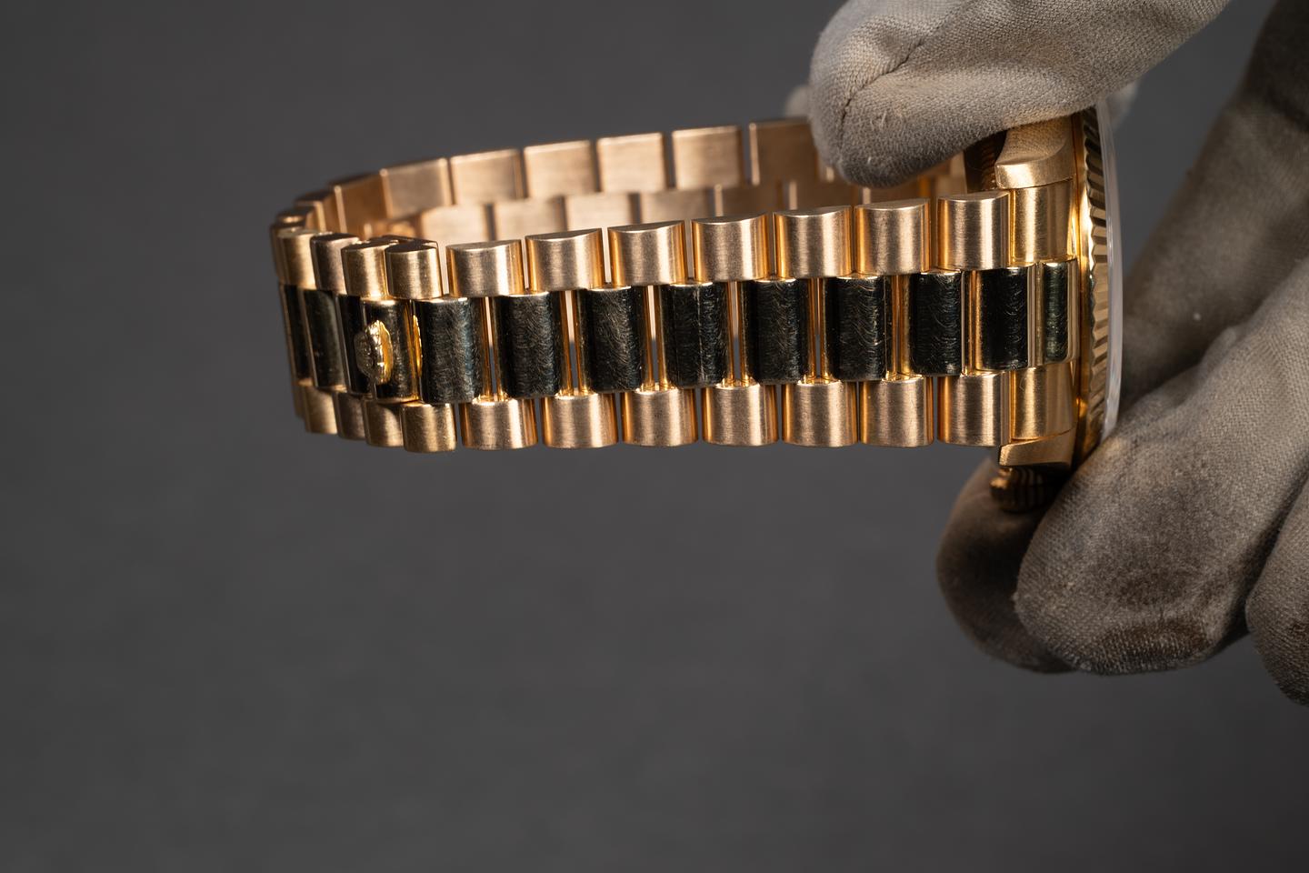 Bracelet: The 23-link 18K yellow gold President bracelet is excellent, showing no perceivable stretch.
