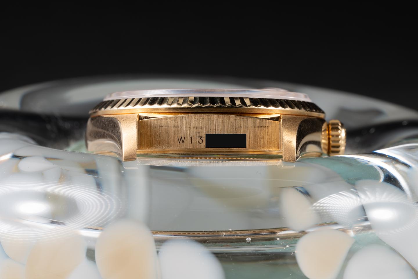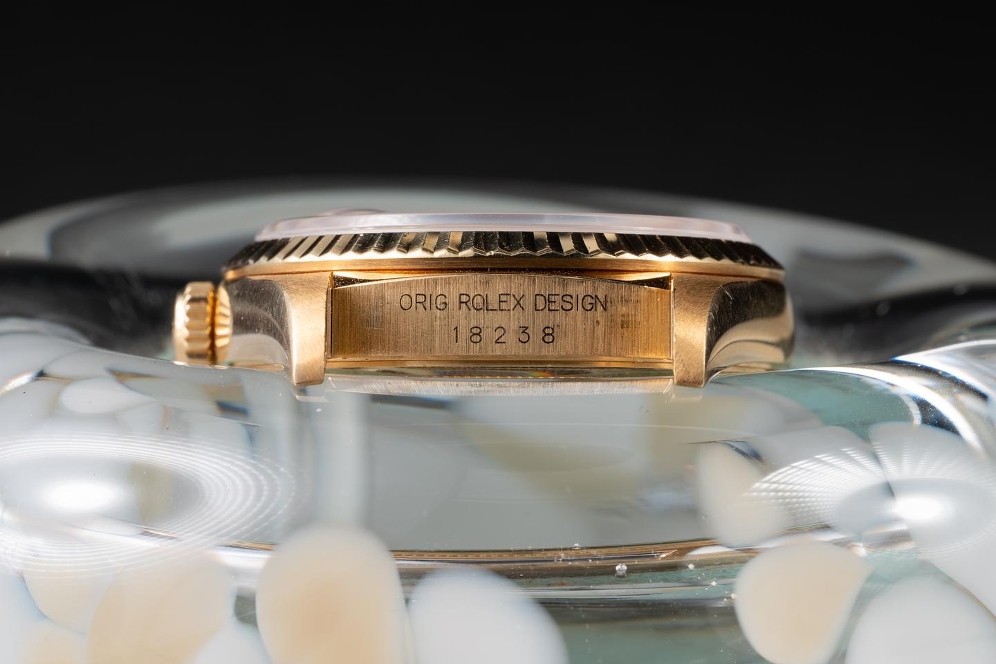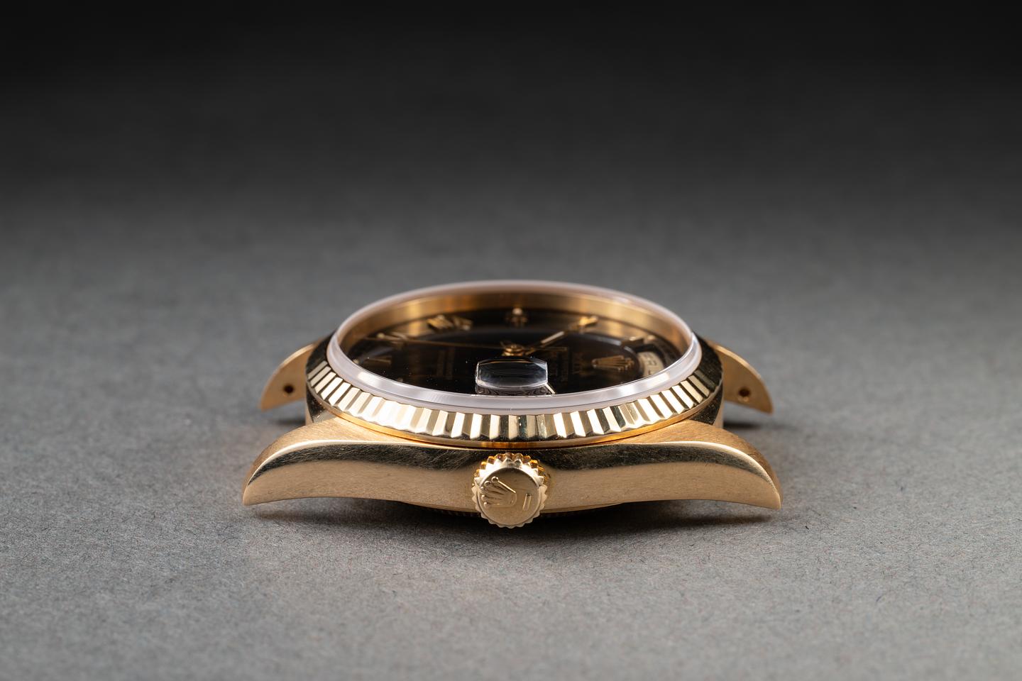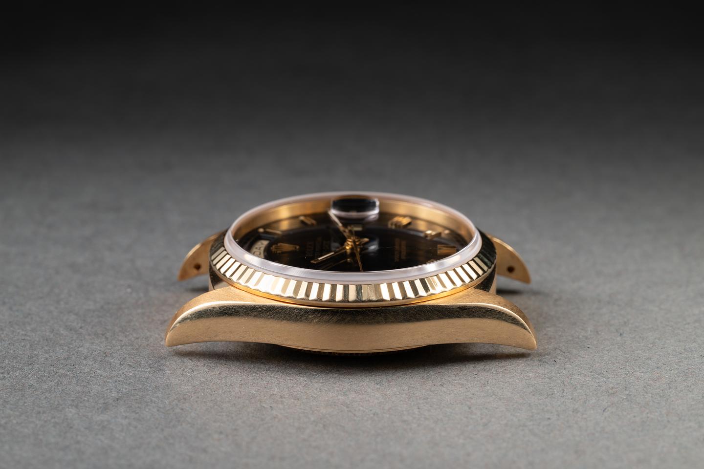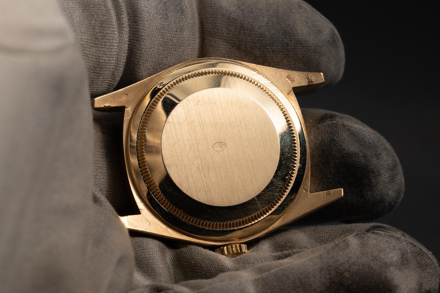 Case: The previously polished 18K yellow gold case is excellent, showing some light wear from use. The 18K yellow gold fluted bezel is also in excellent condition, showing some light wear from use.