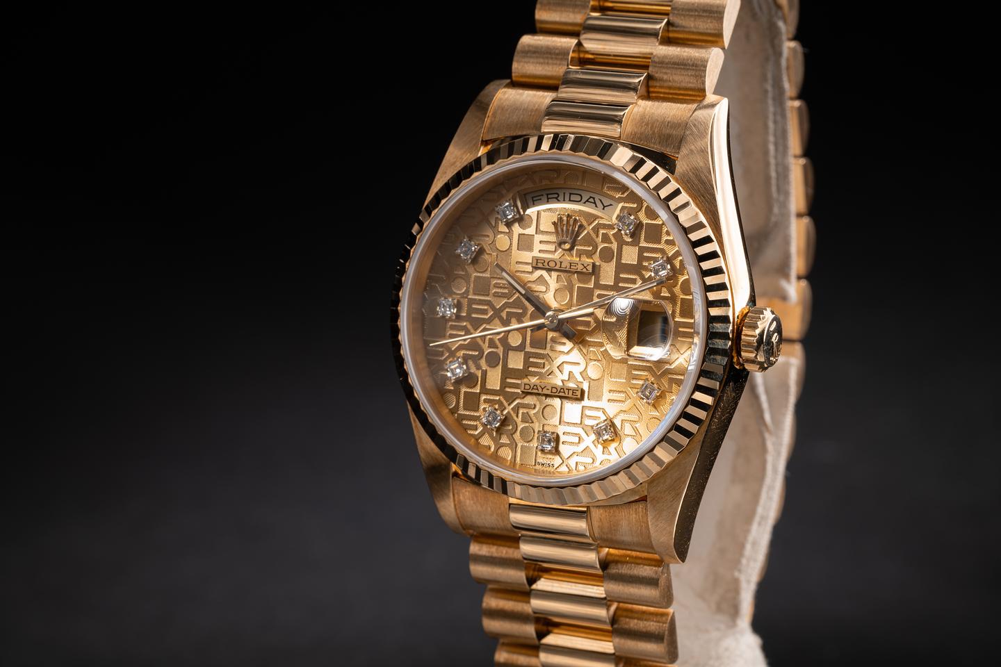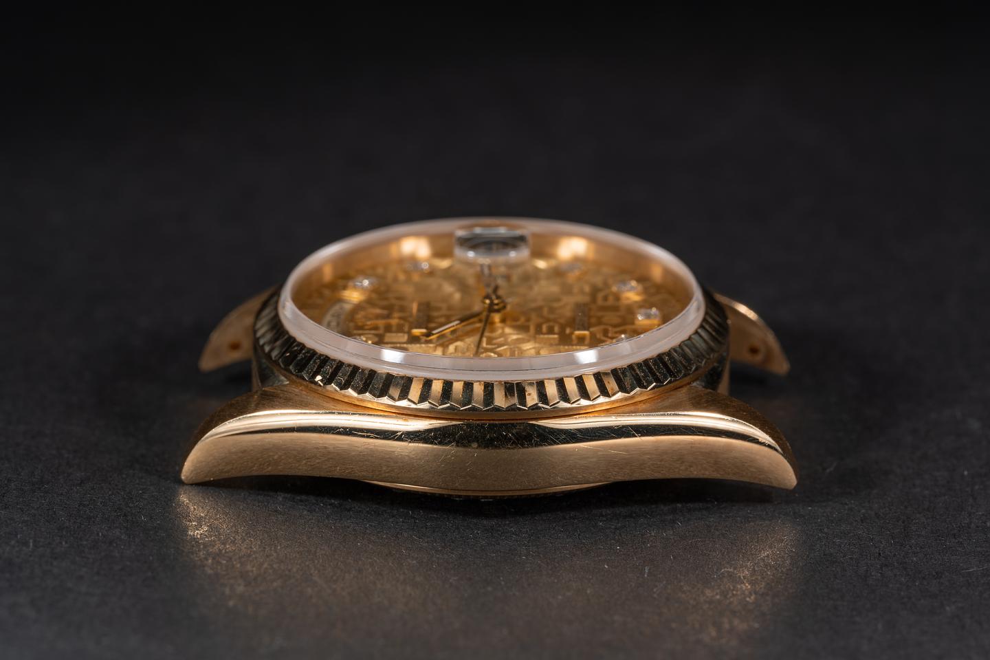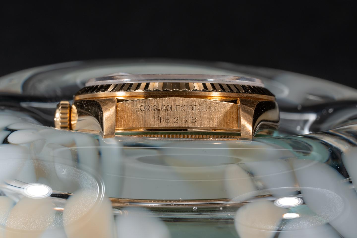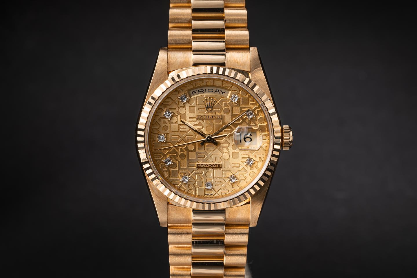 Bracelet: The 22 link 18K yellow gold president bracelet is excellent showing only extremely light stretch for its age. The clasp is stamped with a 1993 date code.