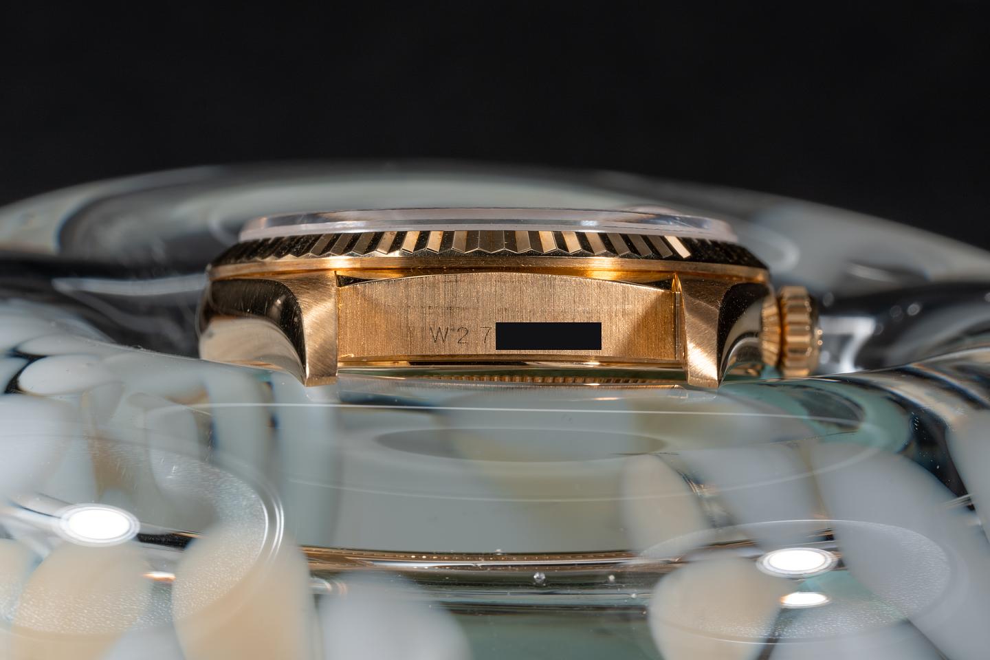 Case: The previously polished 18k yellow gold case is excellent showing only very light wear from use. The sharp 18k fluted bezel is also in excellent condition showing only very light wear from use.