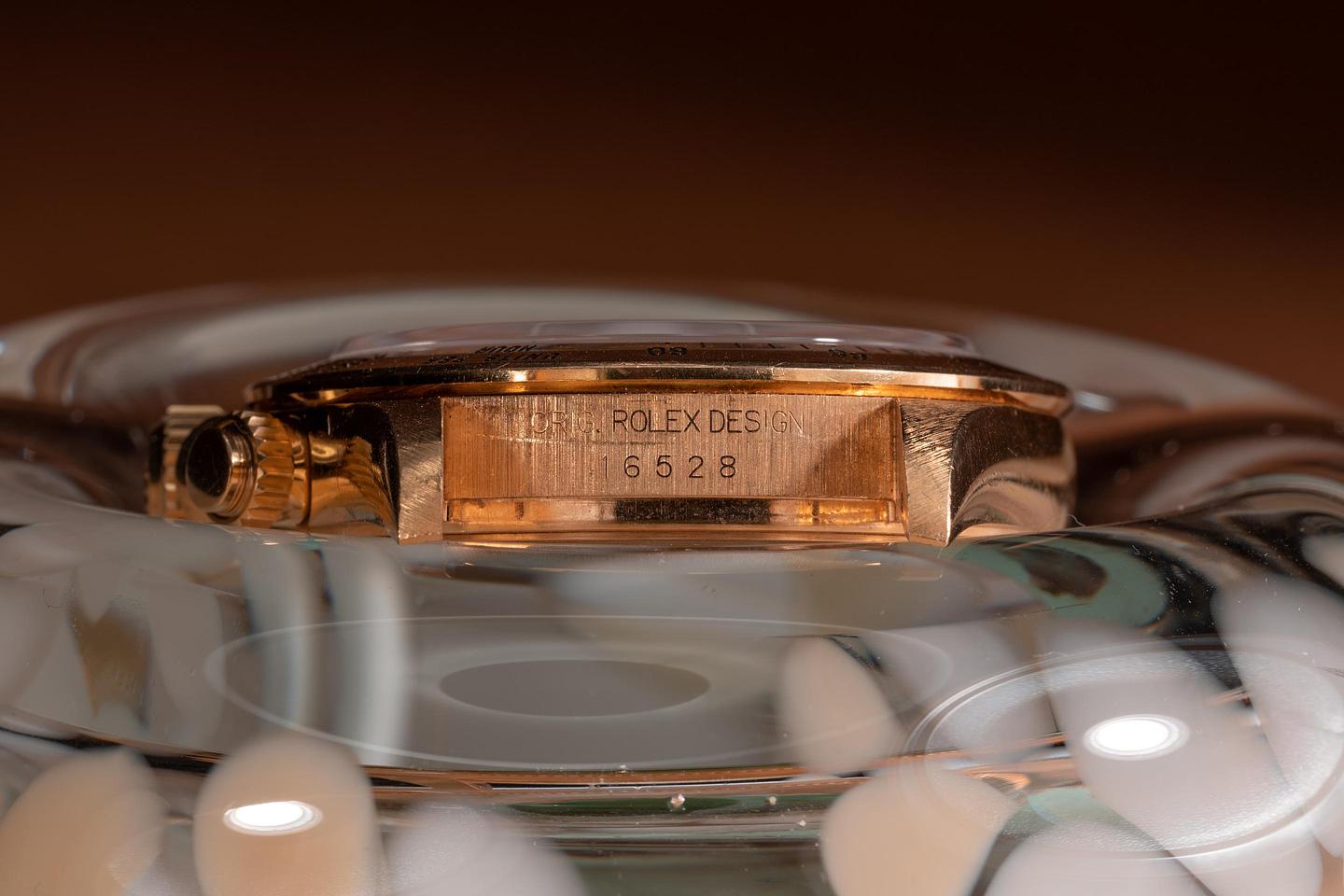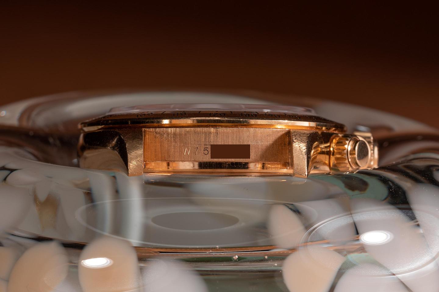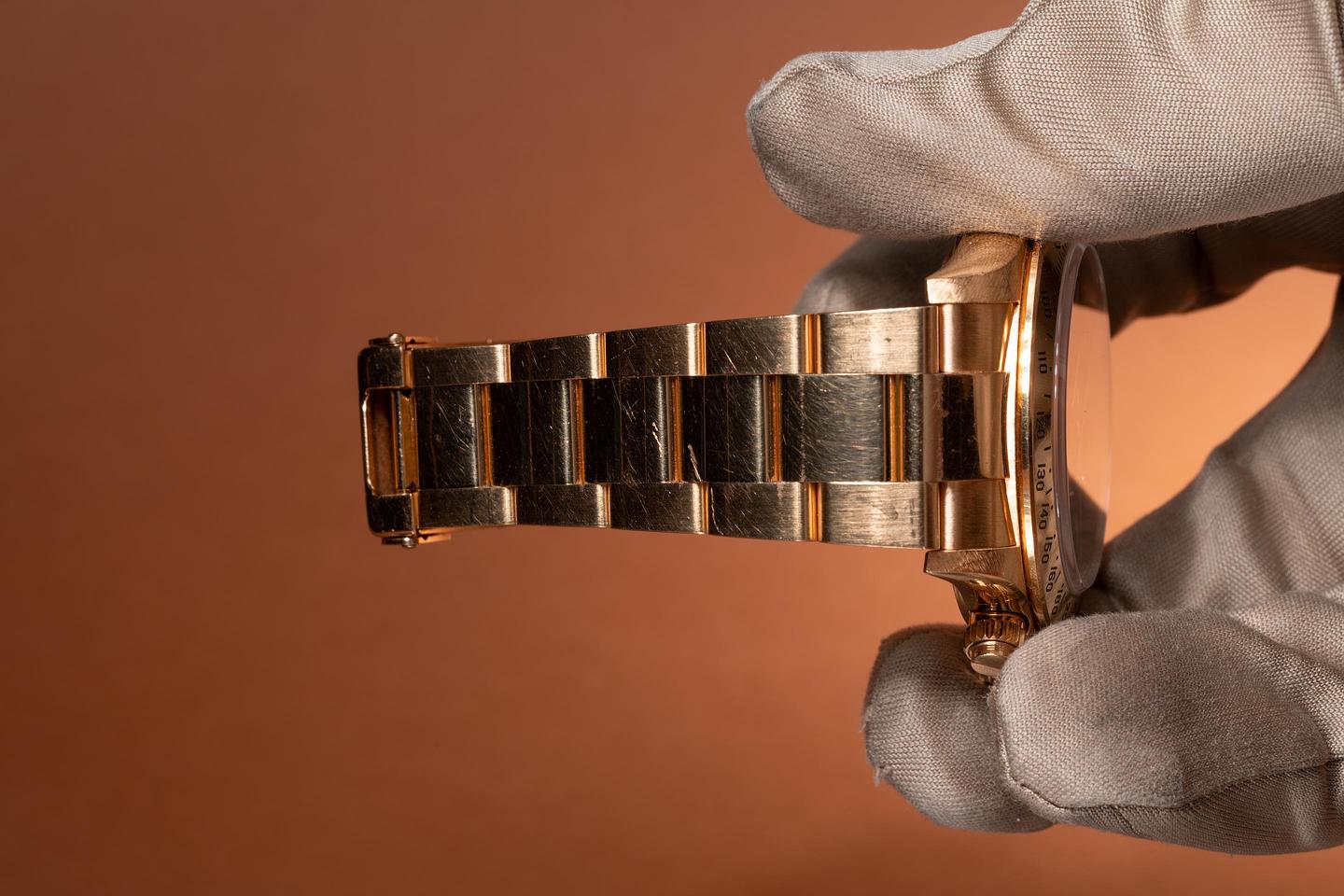 Case: The thick and even 18k yellow gold case is excellent showing some light wear from use. The 18k yellow gold bezel is also in excellent condition showing some light wear from use.