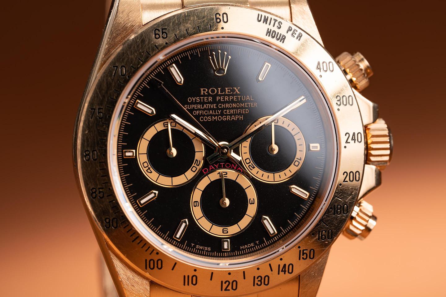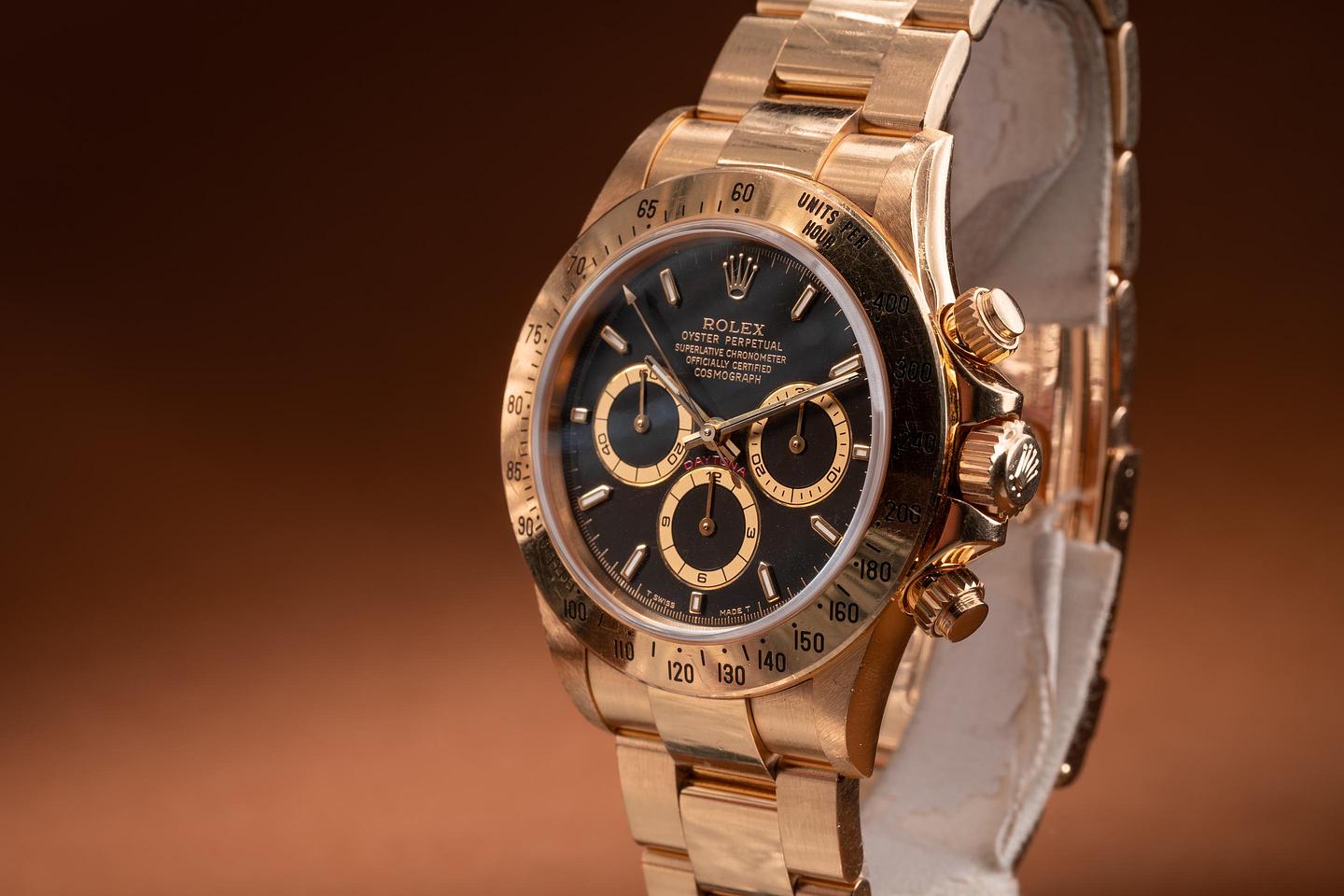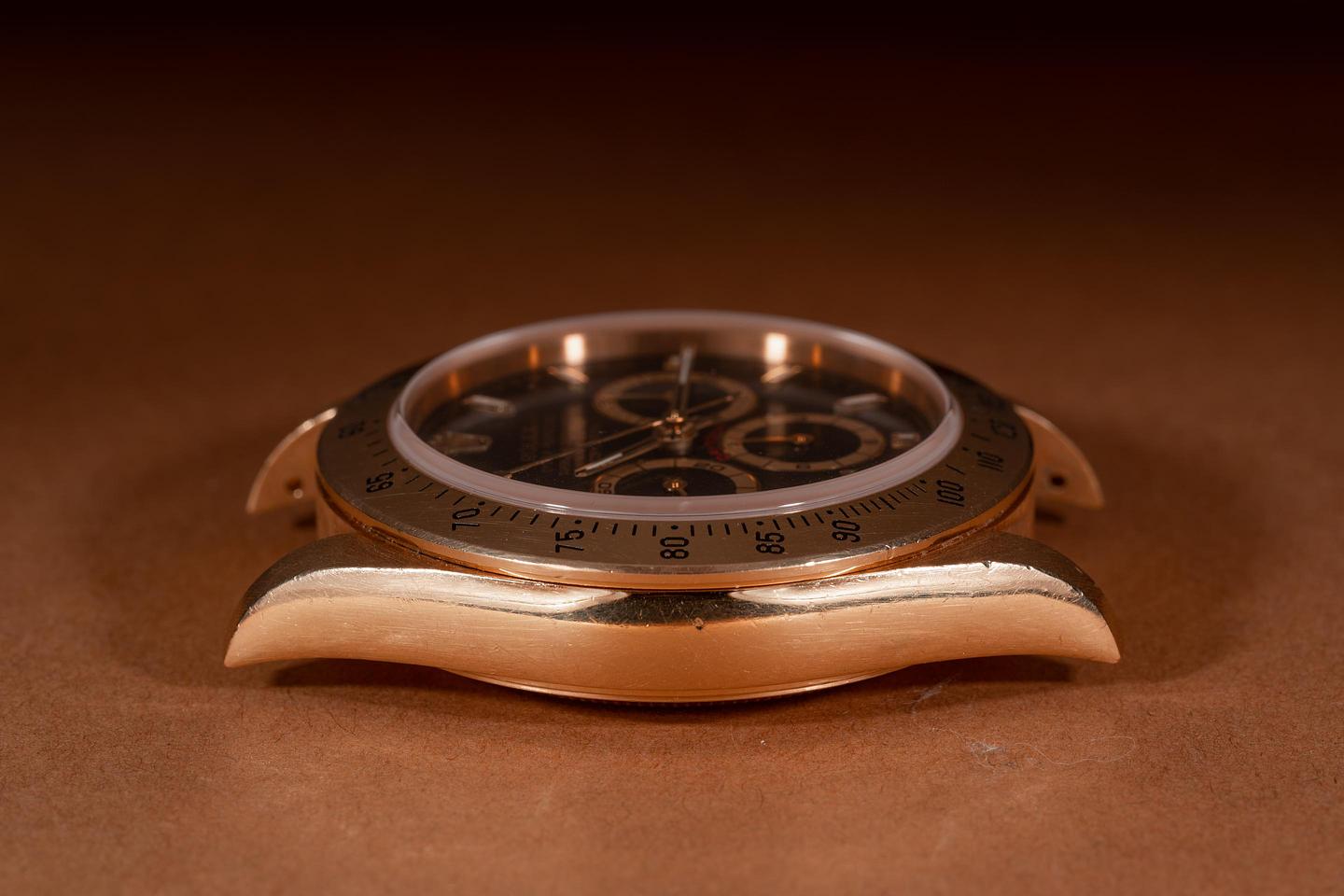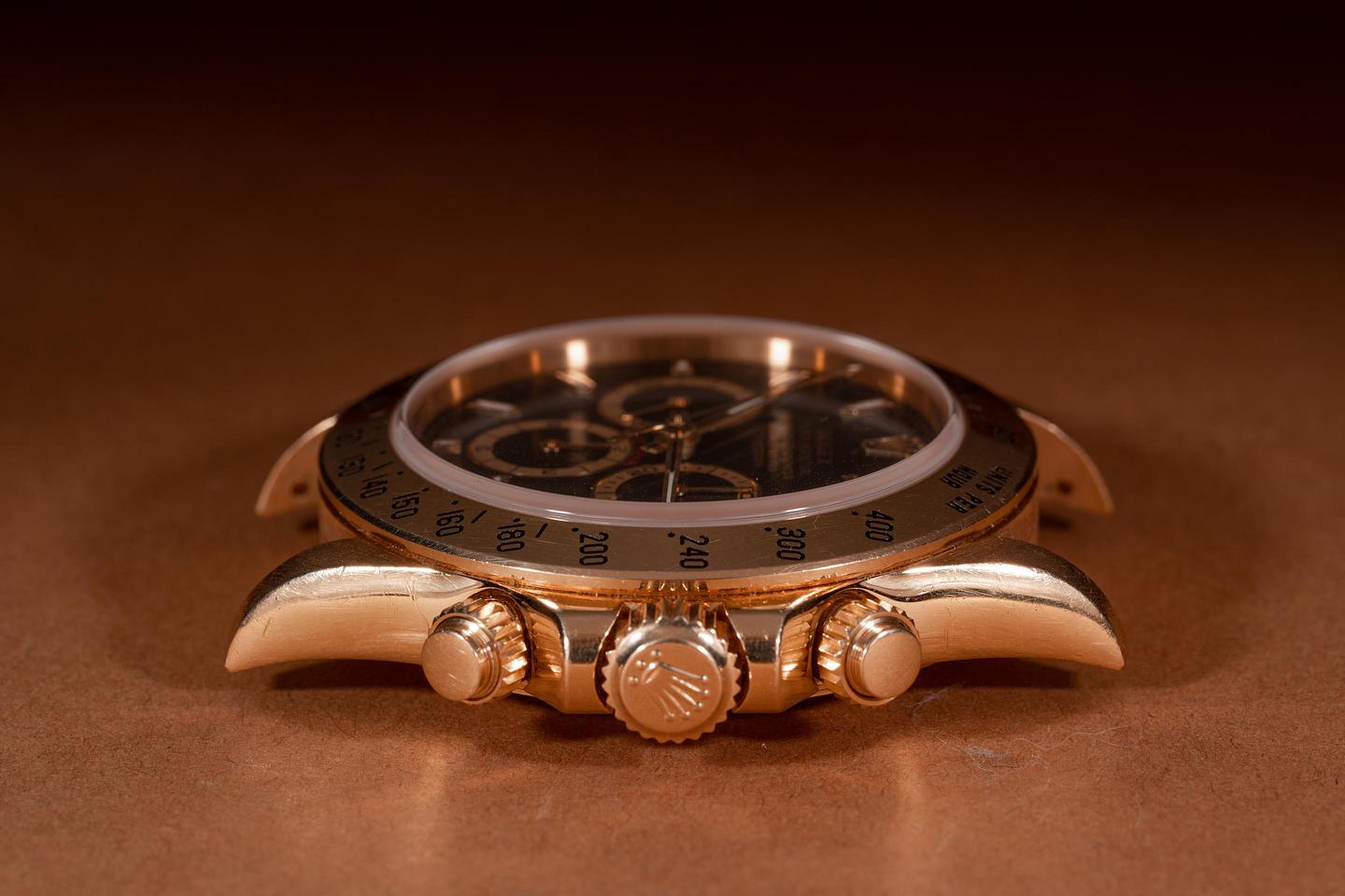 Case: The thick and even 18k yellow gold case is excellent showing some light wear from use. The 18k yellow gold bezel is also in excellent condition showing some light wear from use.