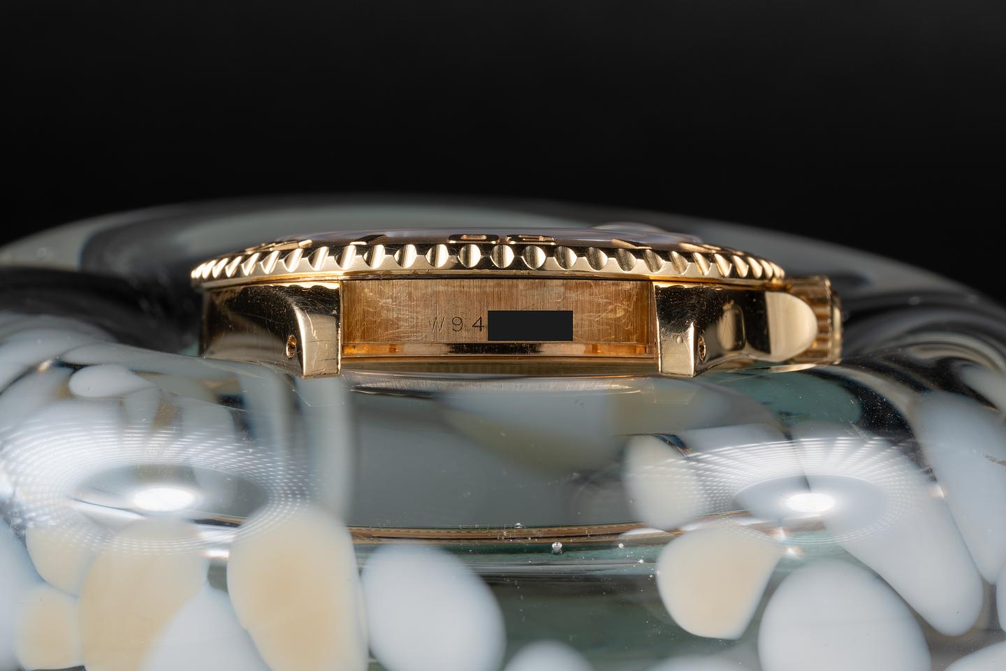 Case: The 18k yellow gold MK 1 has light wear from use. The 18k yellow gold bezel is also in excellent condition showing only light wear form use.
