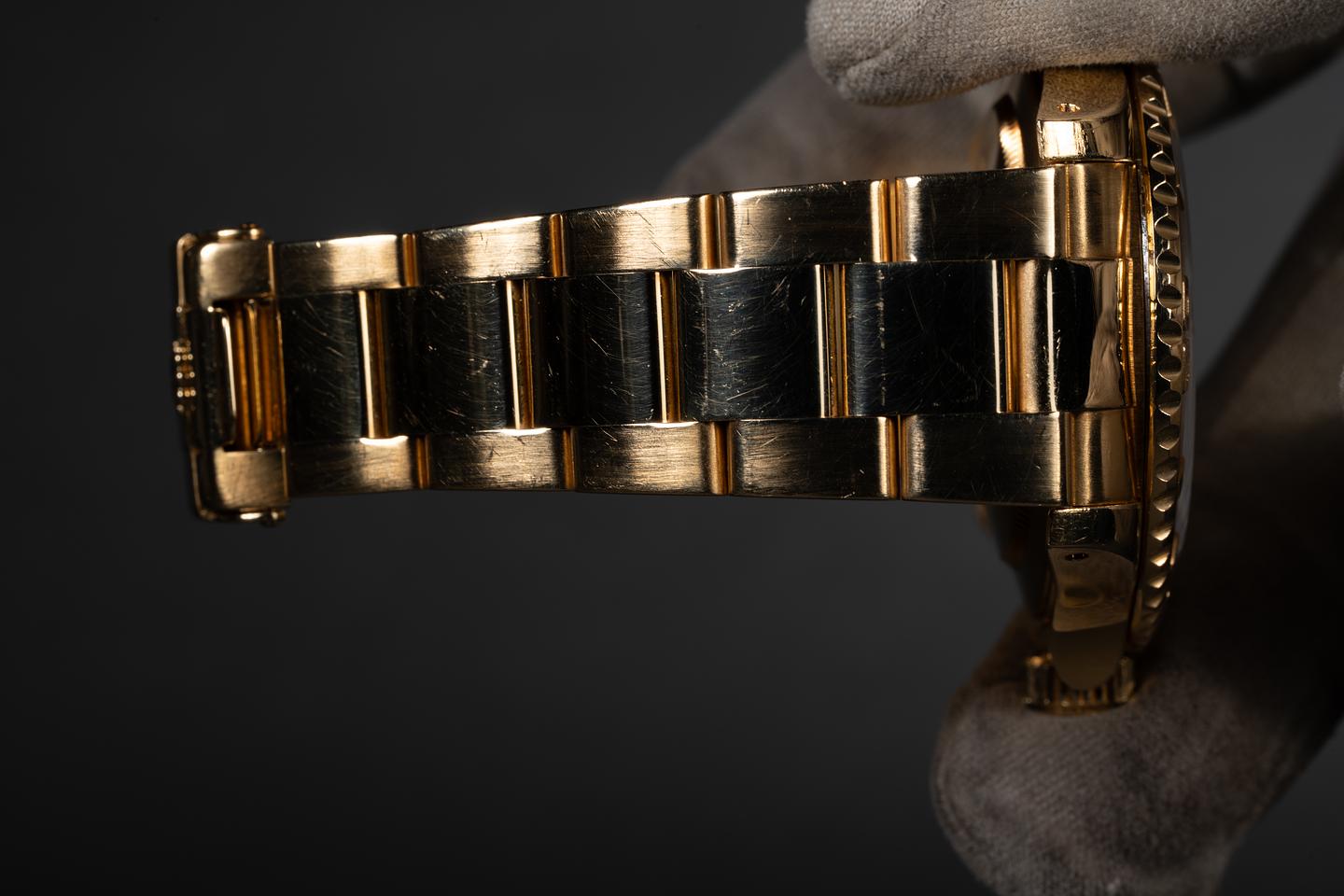 Bracelet: The 12 link 18K yellow gold Oyster bracelet is excellent showing only extremely light stretch.
