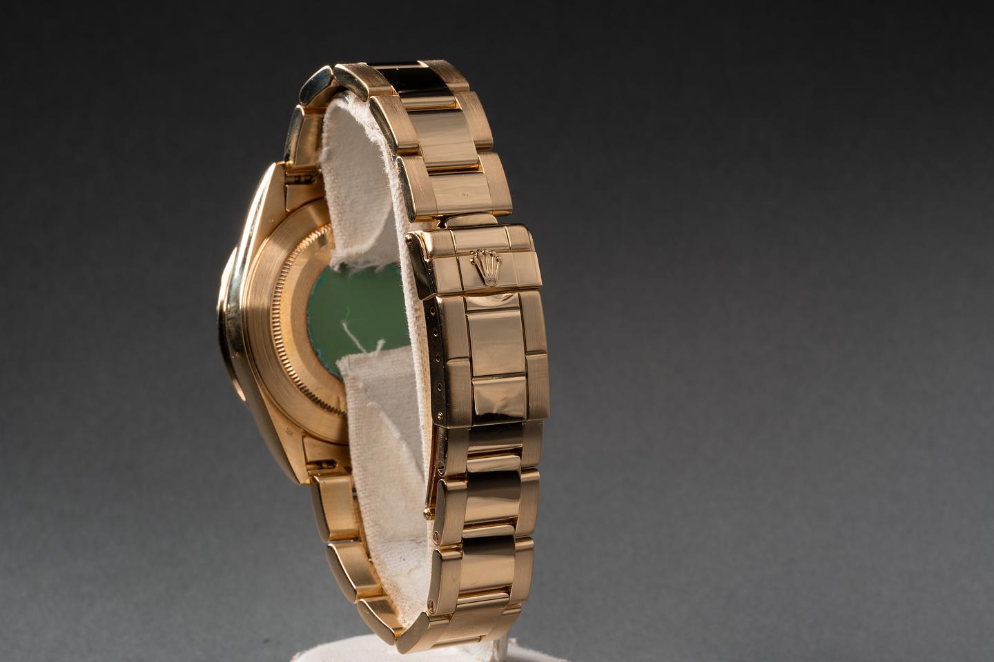 Bracelet: The 12 link 18K yellow gold Oyster bracelet is excellent showing only very light stretch for its age. The clasp is stamped with a matching 1995 date code.