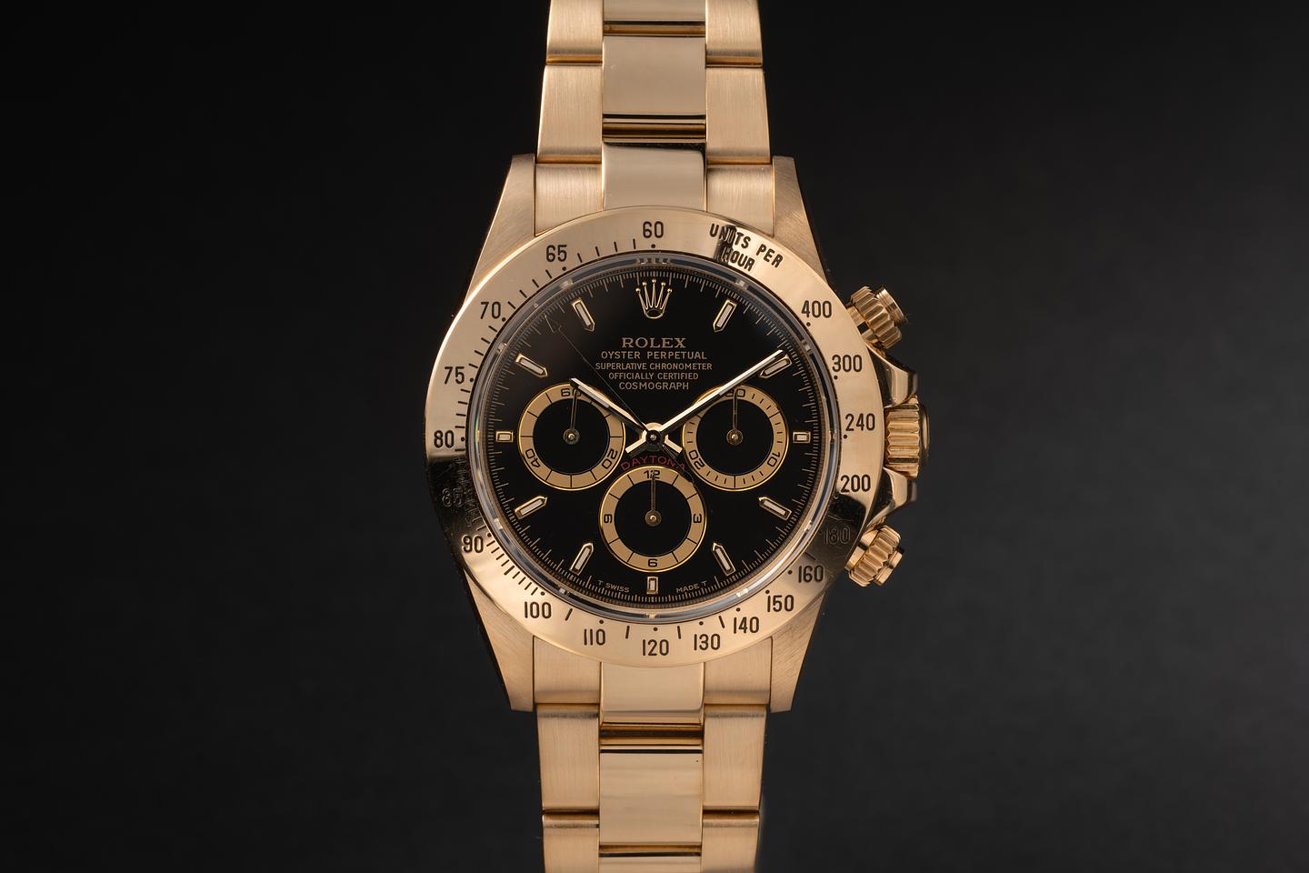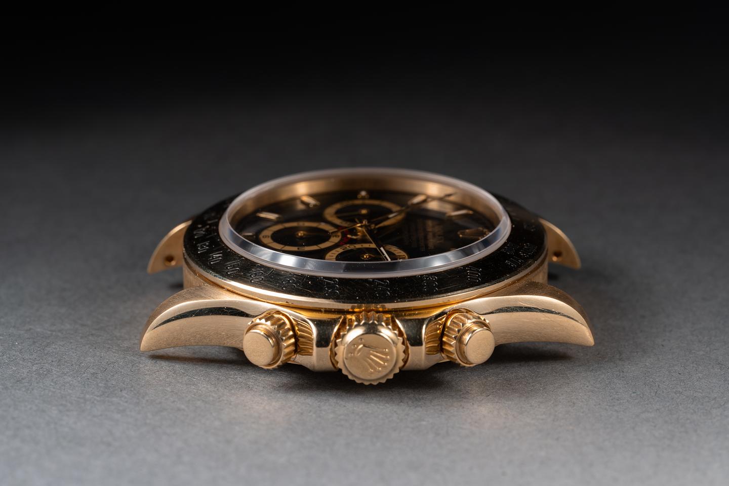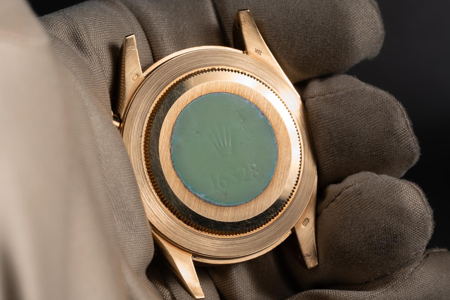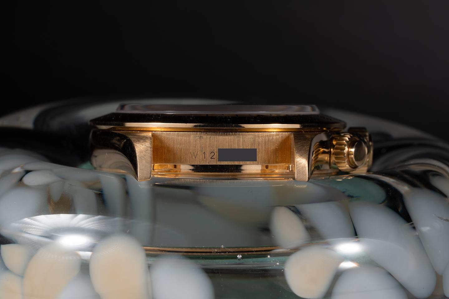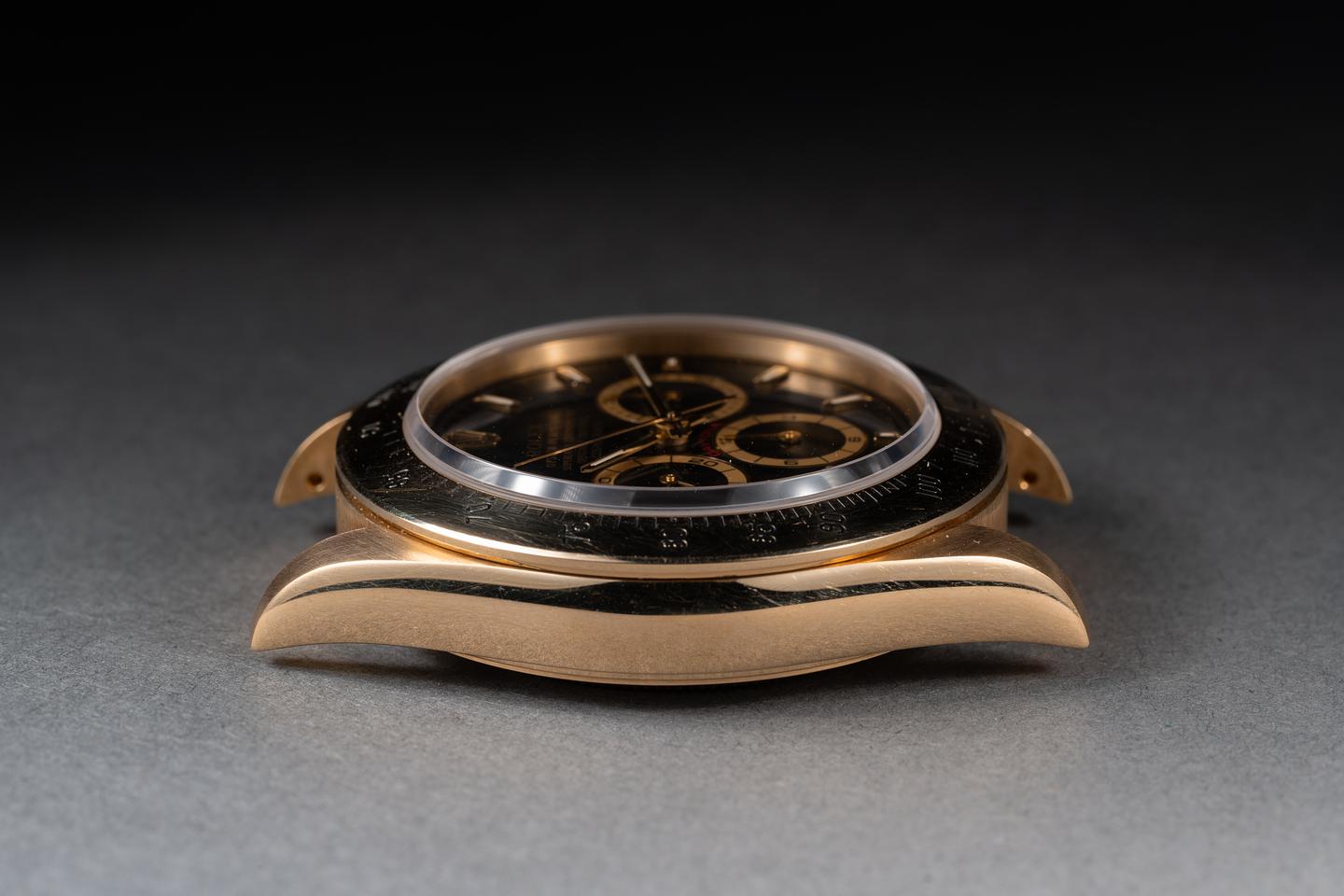 Case: The sharp 18k Yellow gold case is excellent showing only very light wear from use. The 18K yellow gold bezel is also in excellent condition showing only very light wear.
