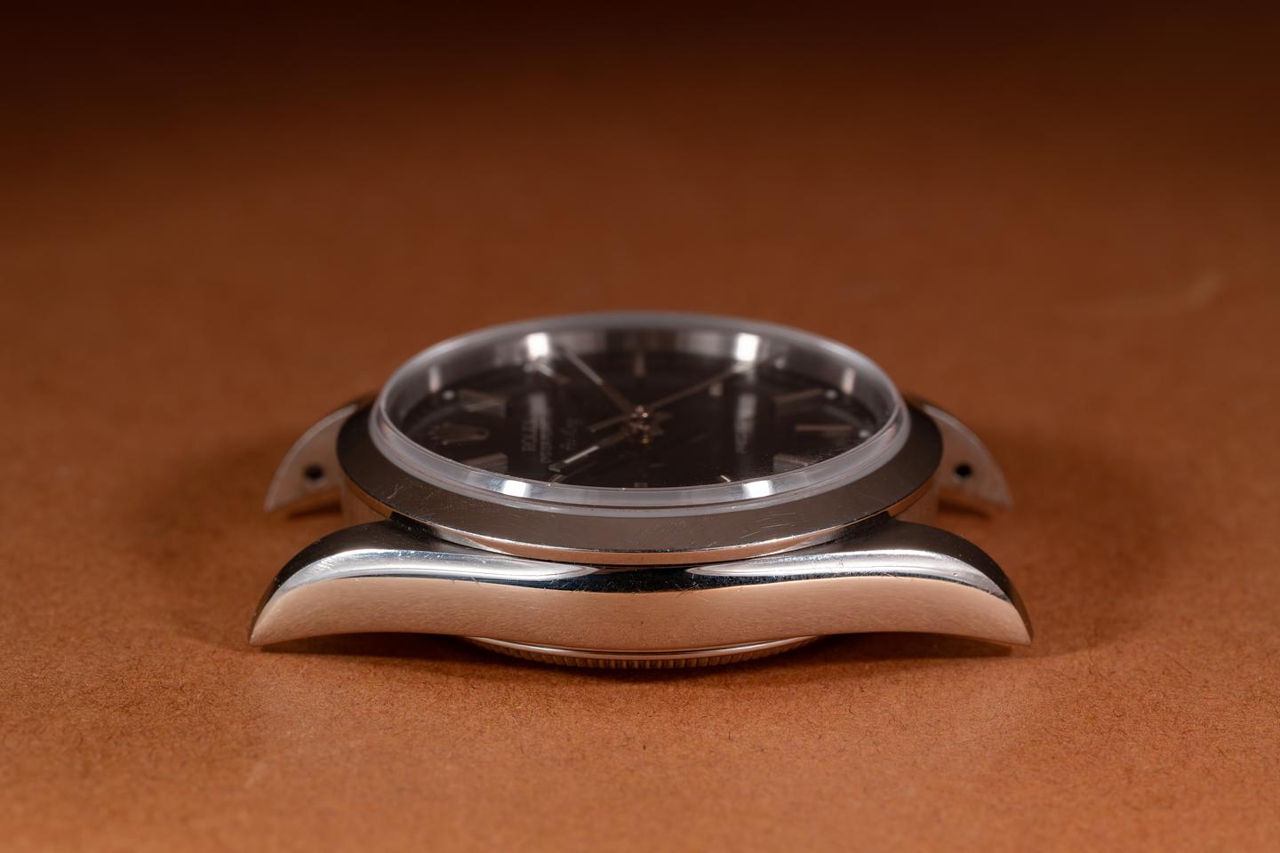 Case: The previously polished case is excellent showing only light wear from use. The smooth stainless bezel is also in excellent condition showing only light wear from use.