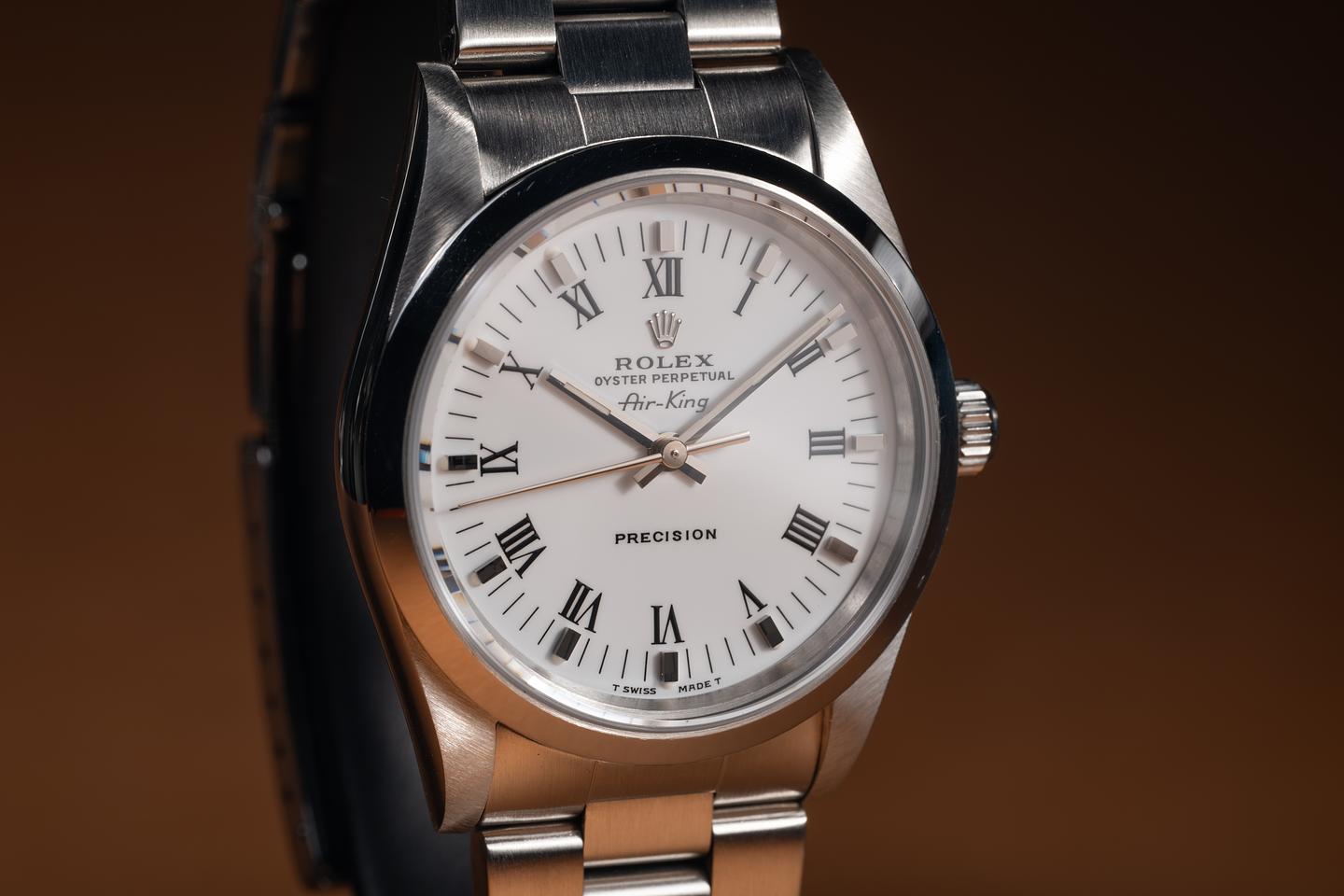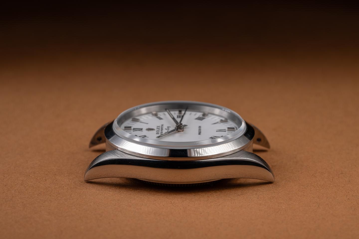 Dial: The white Roman numeral dial is excellent, showing no visible wear. The lume has aged to a clean, creamy hue, and the hands match perfectly.