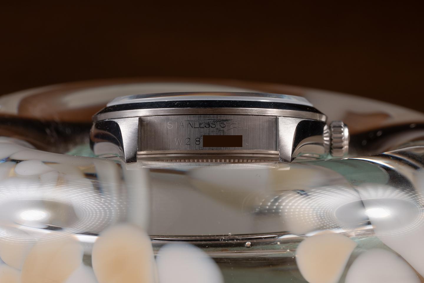 Case: The sharp 34mm case is excellent showing only very light wear light wear from use. The smooth stainless bezel is also in excellent condition, showing only very light wear.