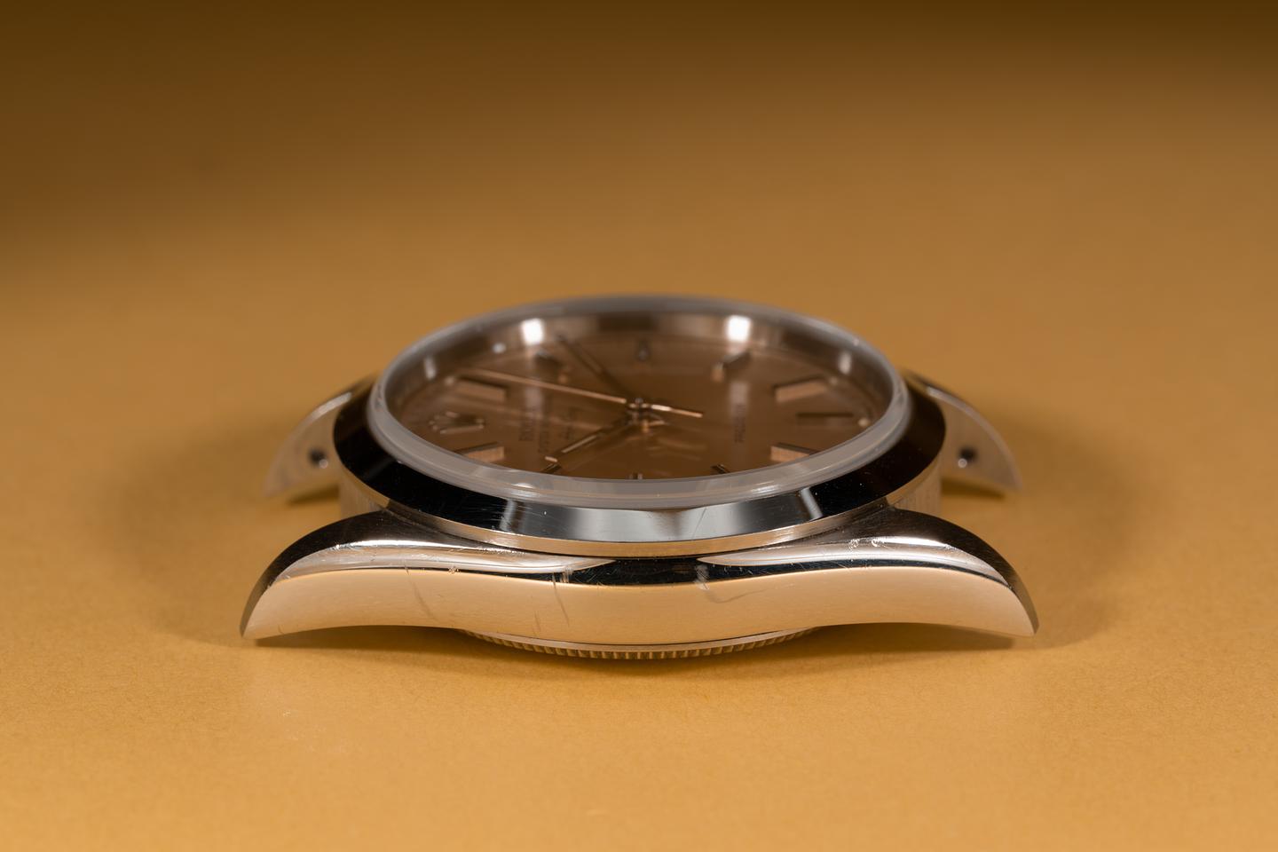 Case: The thick and even 34mm case is excellent showing only light wear from use. The smooth stainless bezel is also in excellent condition showing only light wear from use.