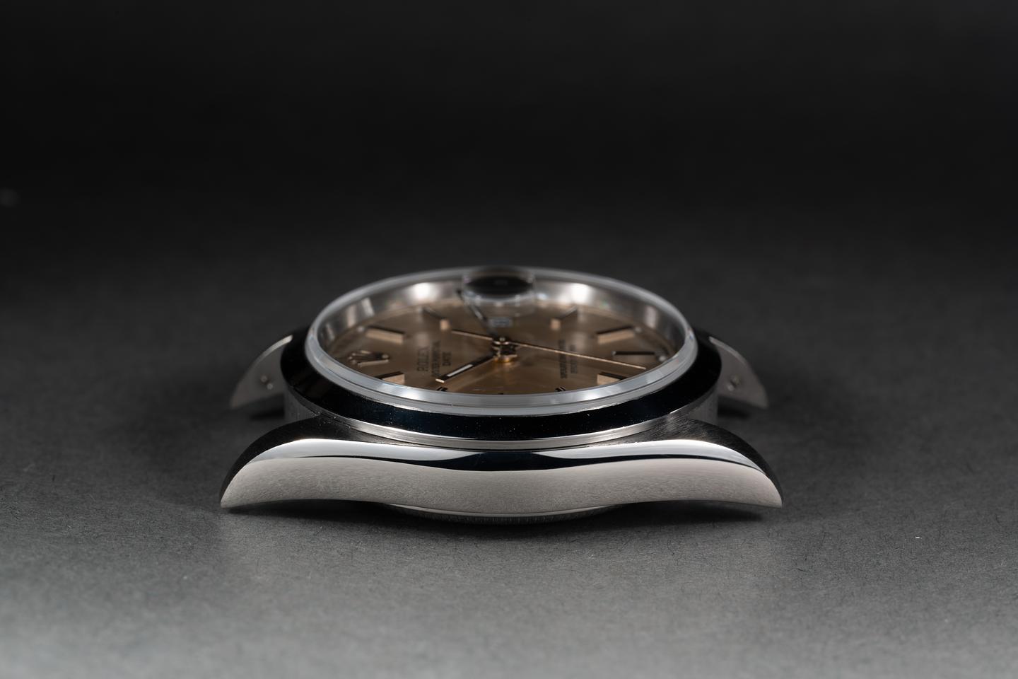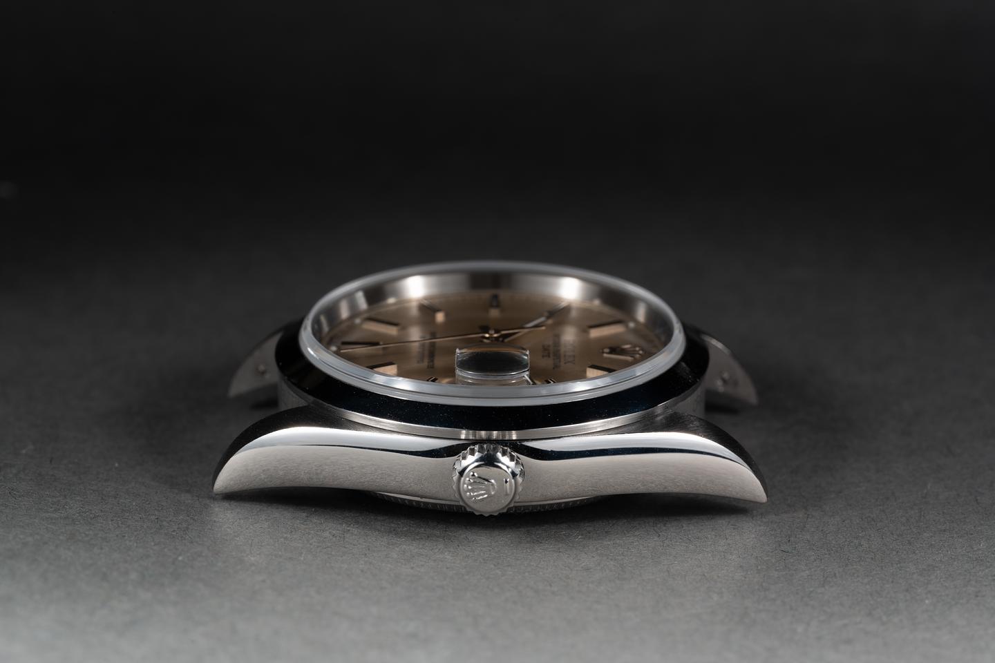 Case: The sharp 34mm case is excellent showing only light wear from use. The smooth bezel is also in excellent condition showing only light wear from use.