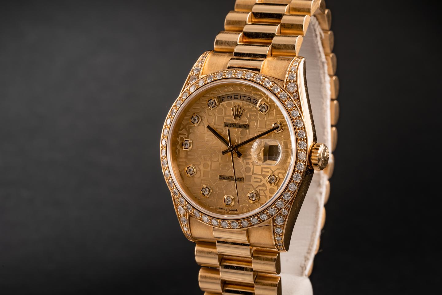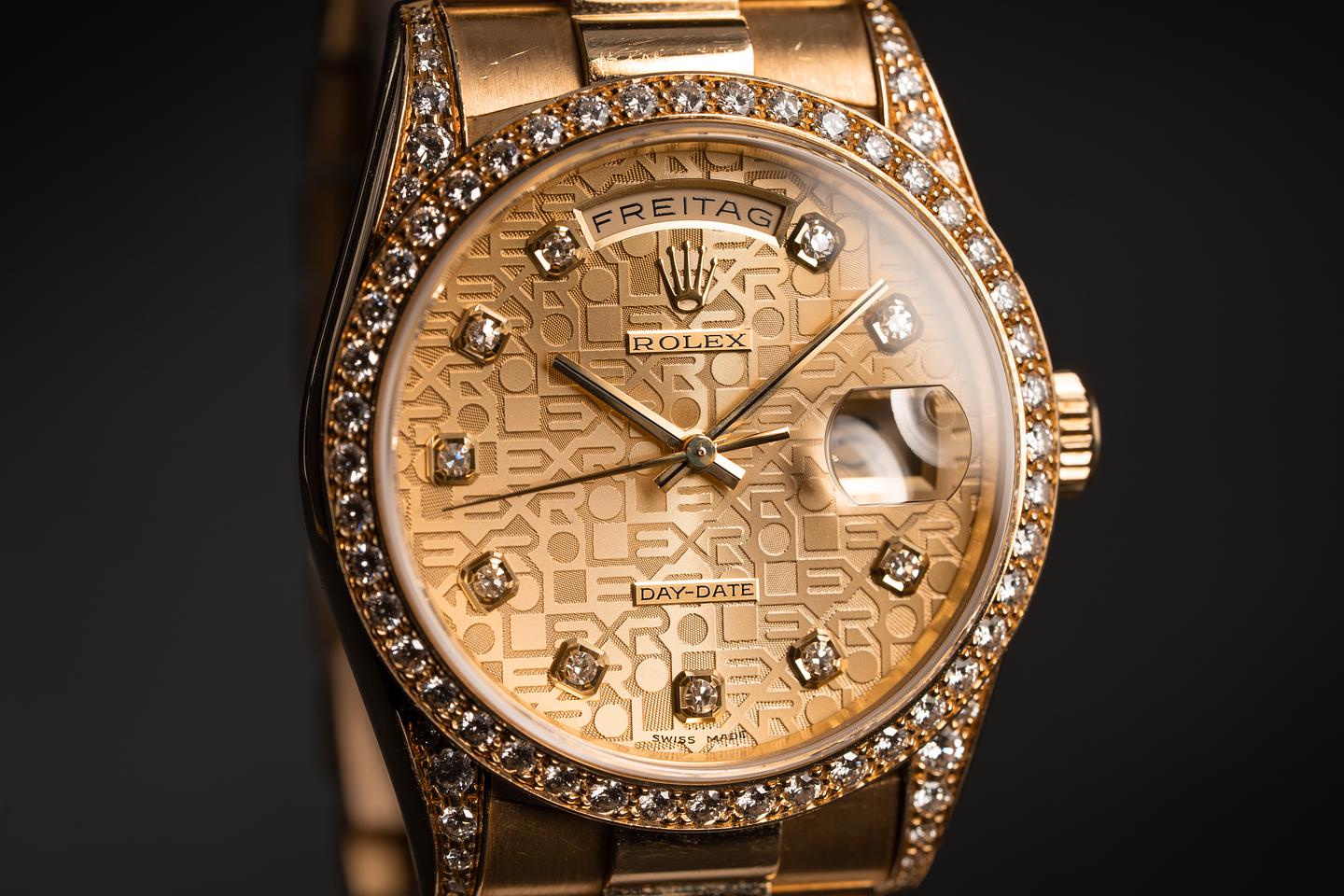 Notes: Lacking all of the subtleties of its stainless steel cousins. The diamond set Day-Date is without question the epitome YOLO.