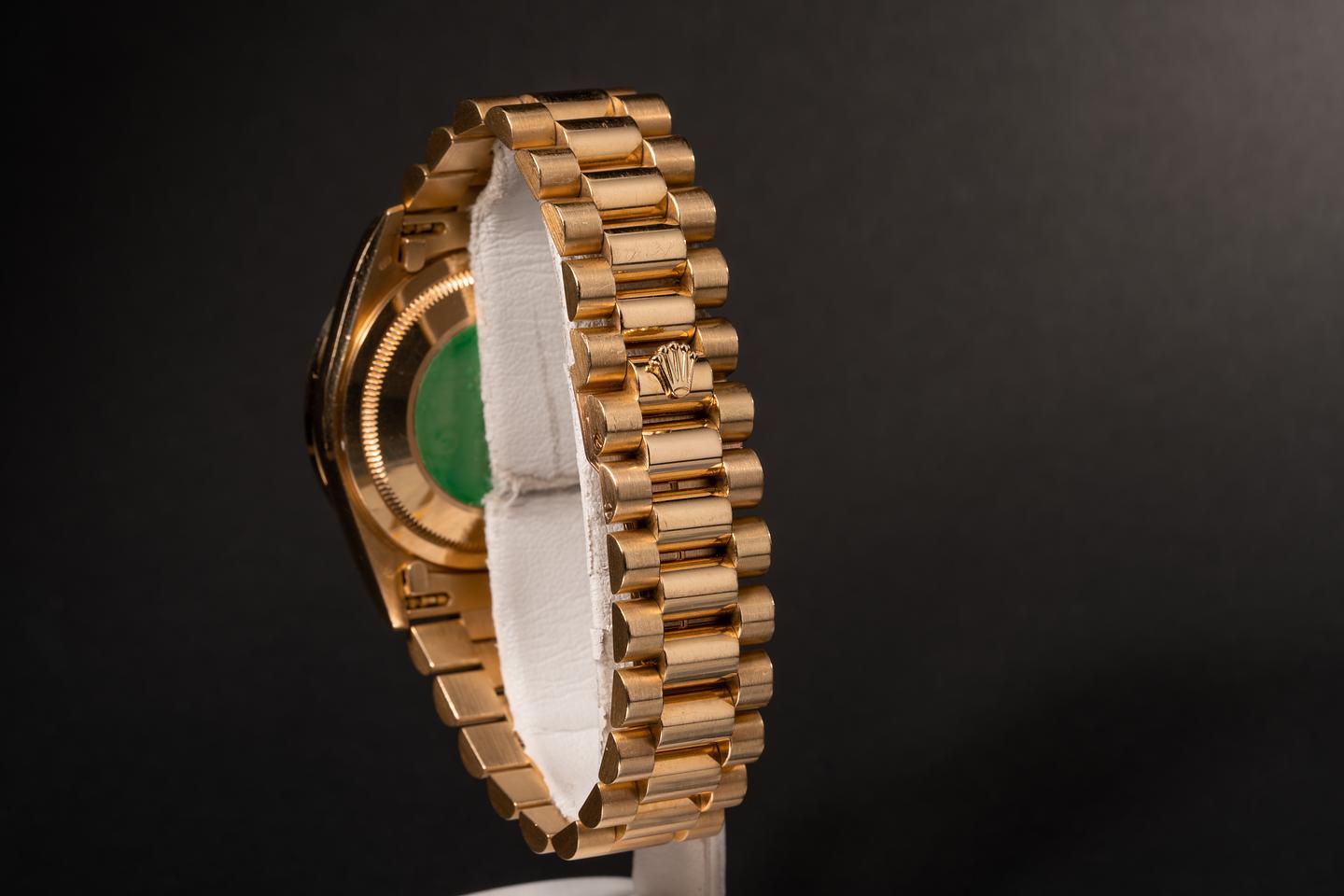 Bracelet: The 21 link 18k yellow gold president bracelet is excellent showing only light stretch for its age.