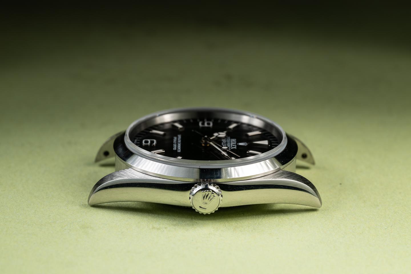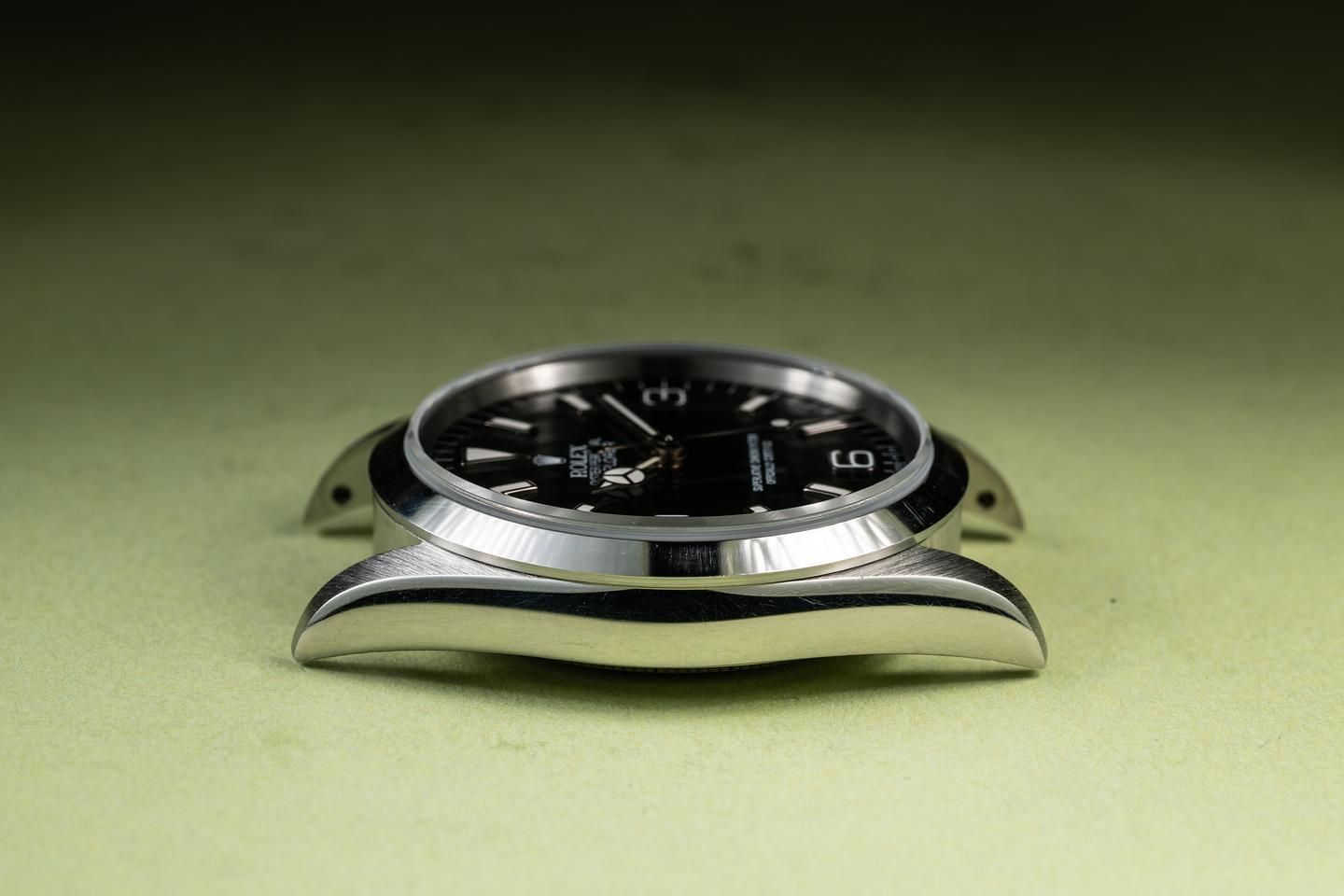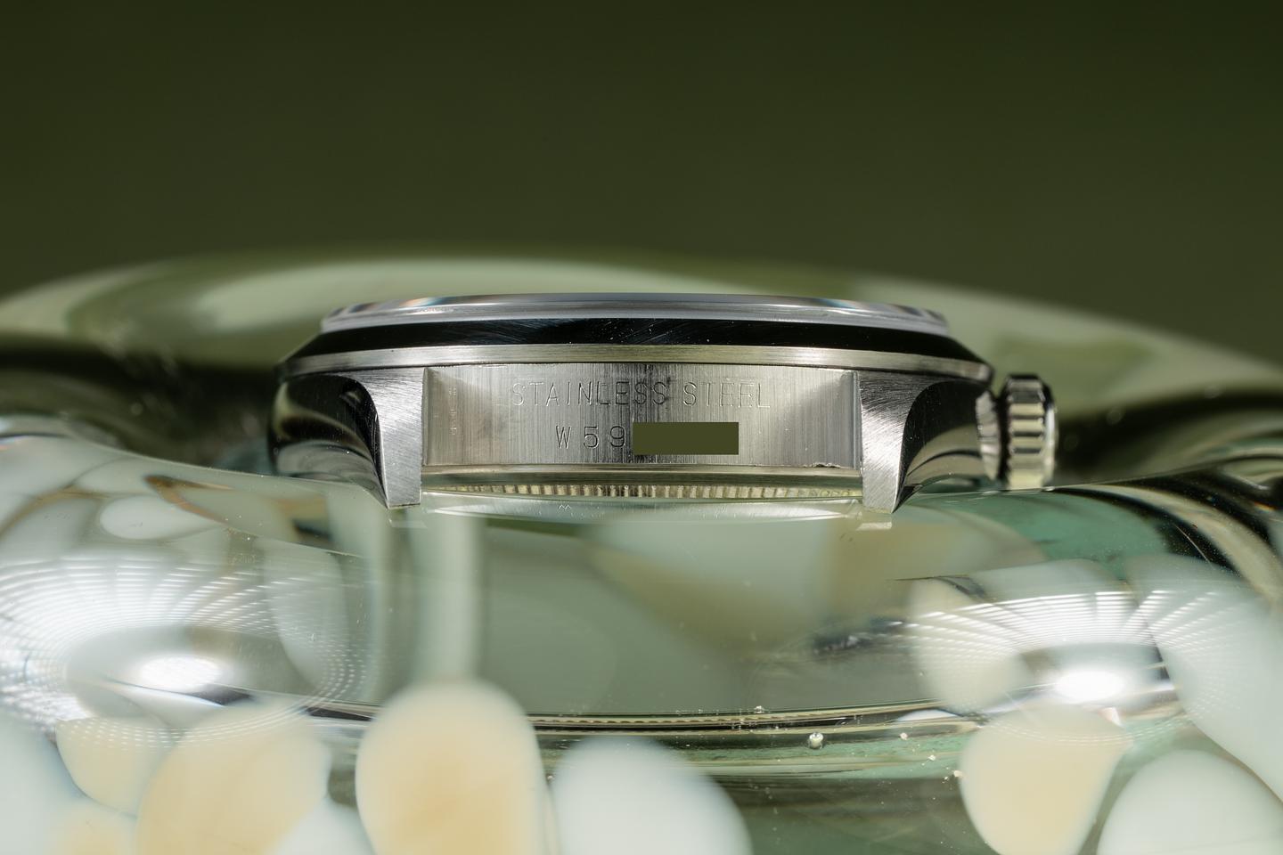 Case: The sharp 36mm case is excellent, showing only very light wear from use. The smooth stainless bezel is also in excellent condition, showing only light wear from use.