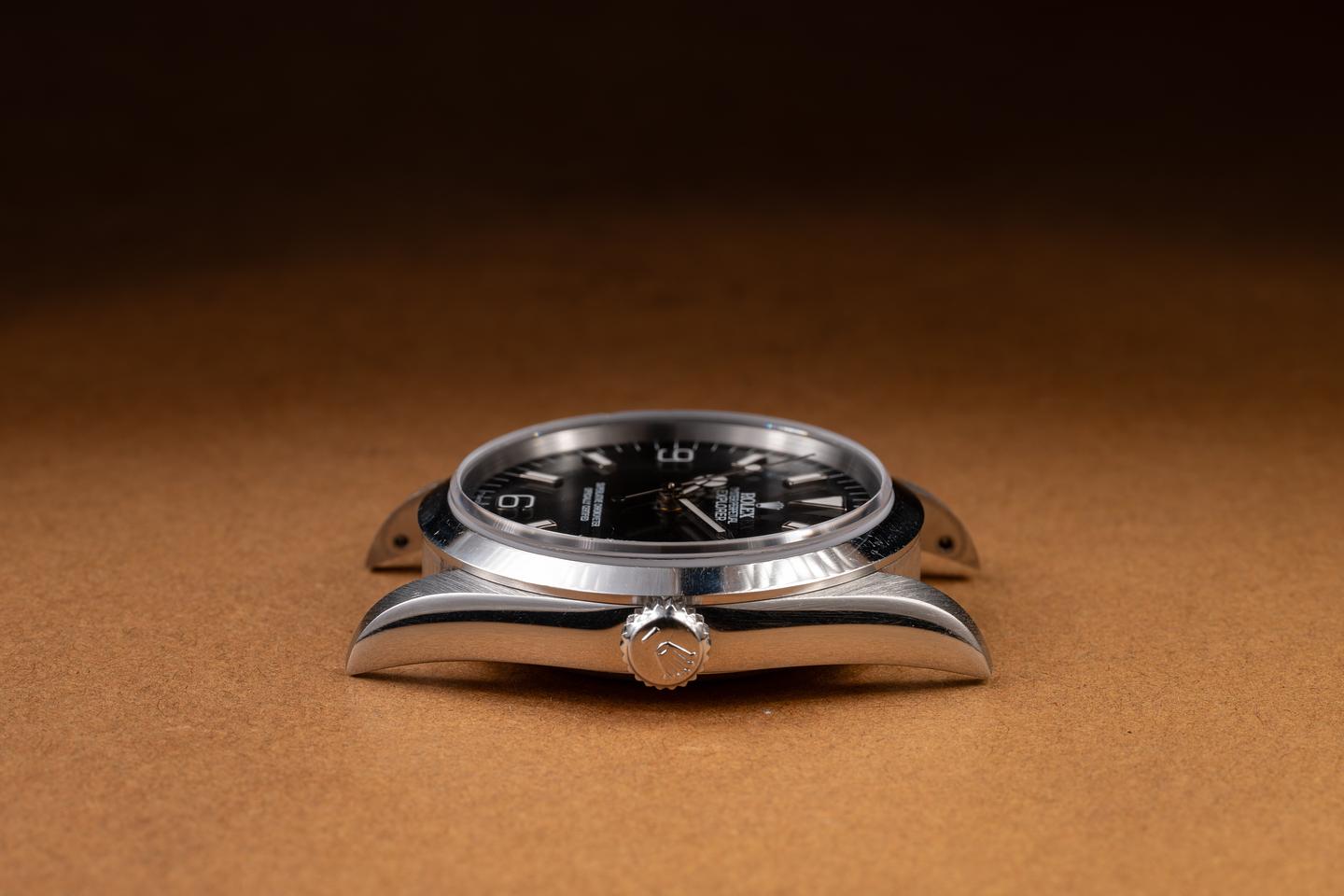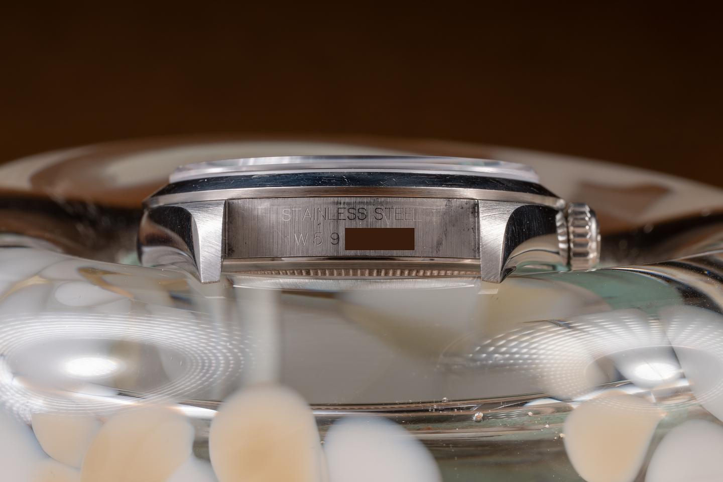 Case: The thick, sharp, and even case is in excellent showing only very light wear from use. The smooth stainless bezel is also in excellent condition, showing only light wear from use. There are some small chips on the edge of the crystal.
