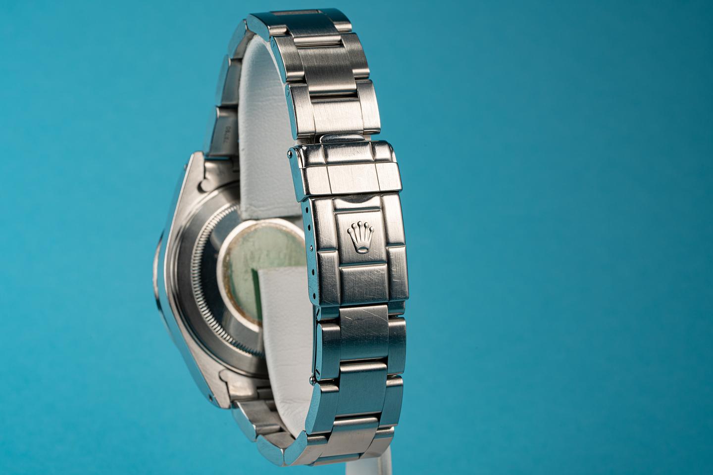 Bracelet: Excellent 12 link oyster bracelet with very light stretch. The clasp is stamped with a 1997 date code.