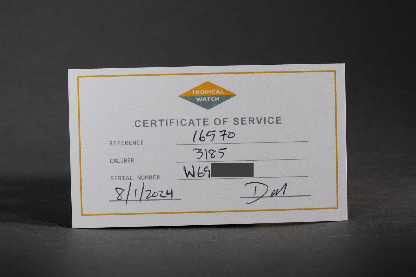 Accessories: August 2024 Tropical Watch Certificate of Service.