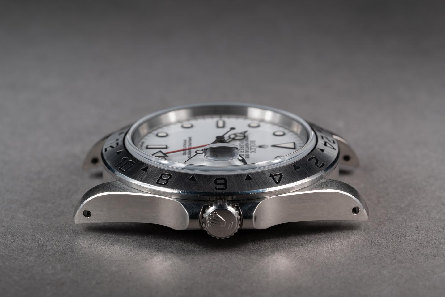 Case: The recently polished case is excellent showing sharp prominent bevels. The stainless bezel is also in excellent condition showing a sharp well defined sunburst finish.