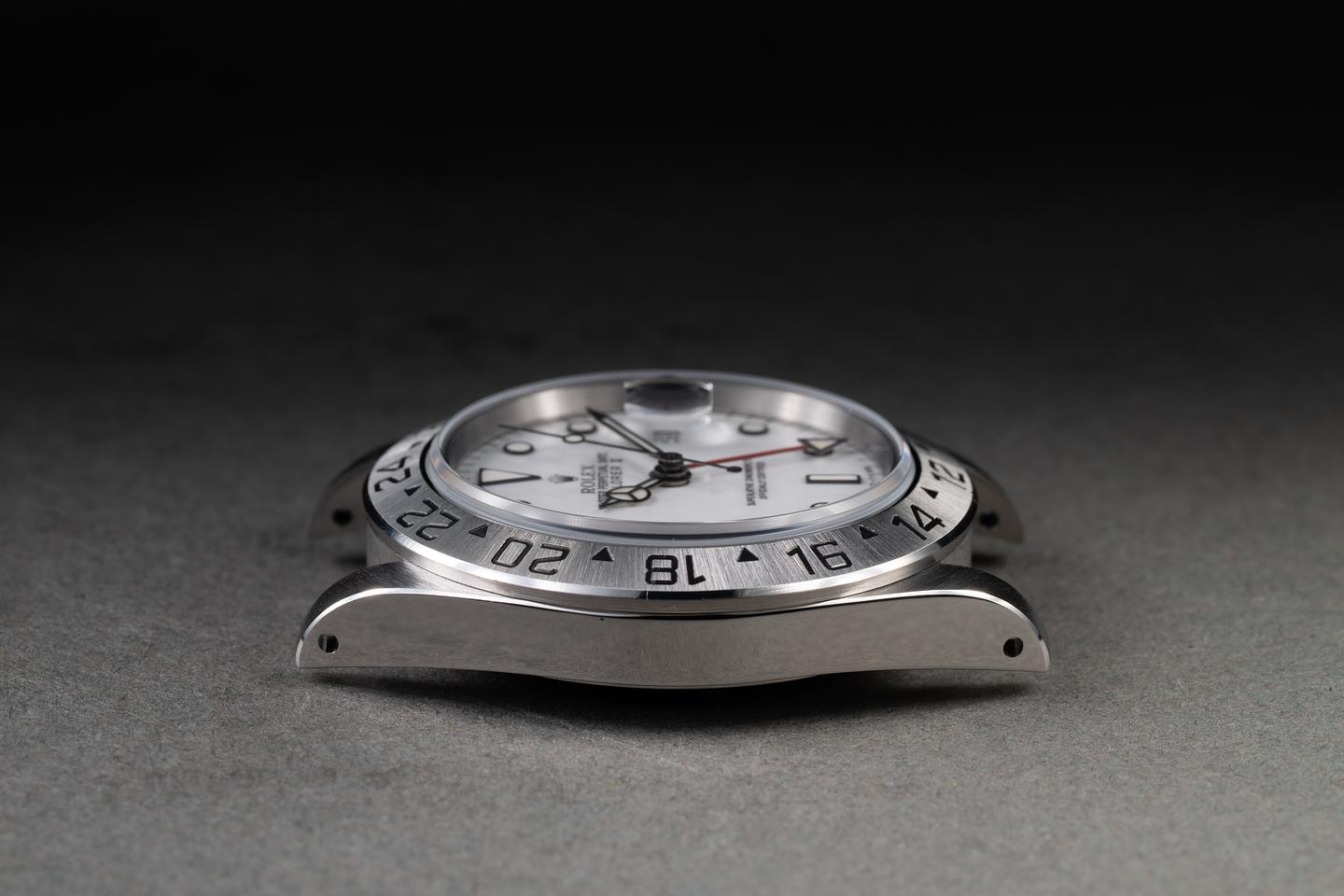 Case: The case has just returned from polishing showing sharp prominent bevels. The freshly polished stainless bezel is also in excellent condition showing a sharp well defined sunburst finish.