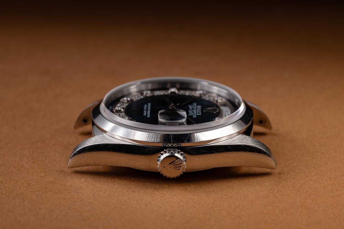 Dial: The blue diamond rope dial is excellent, showing no visible wear. The original factory no lume hands are matching.