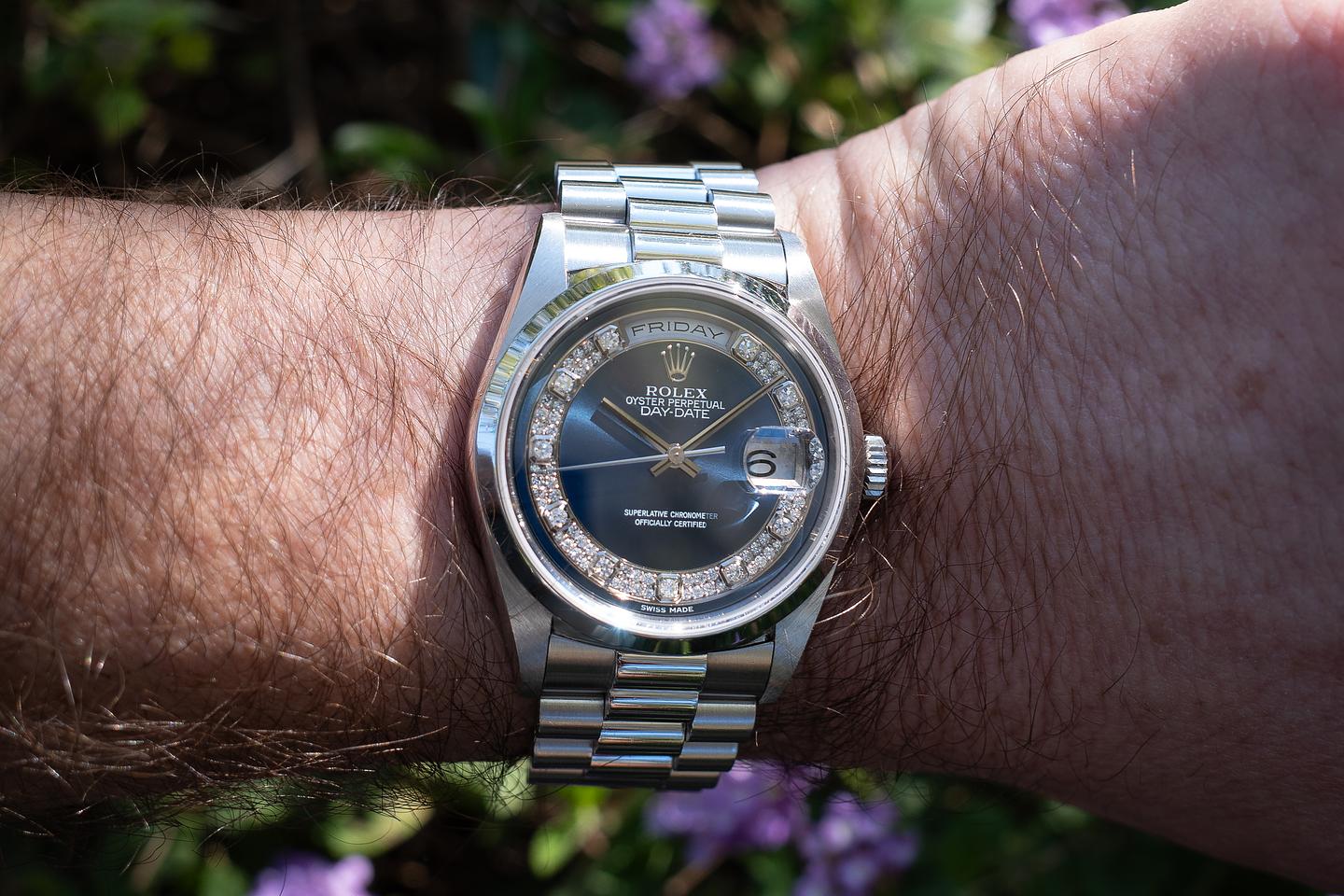 Bracelet: The 22-link Platinum President bracelet is excellent, showing only light, extremely light stretch for its age.