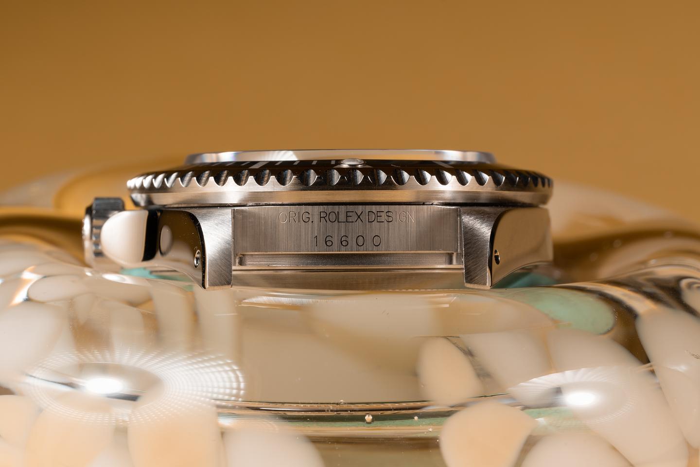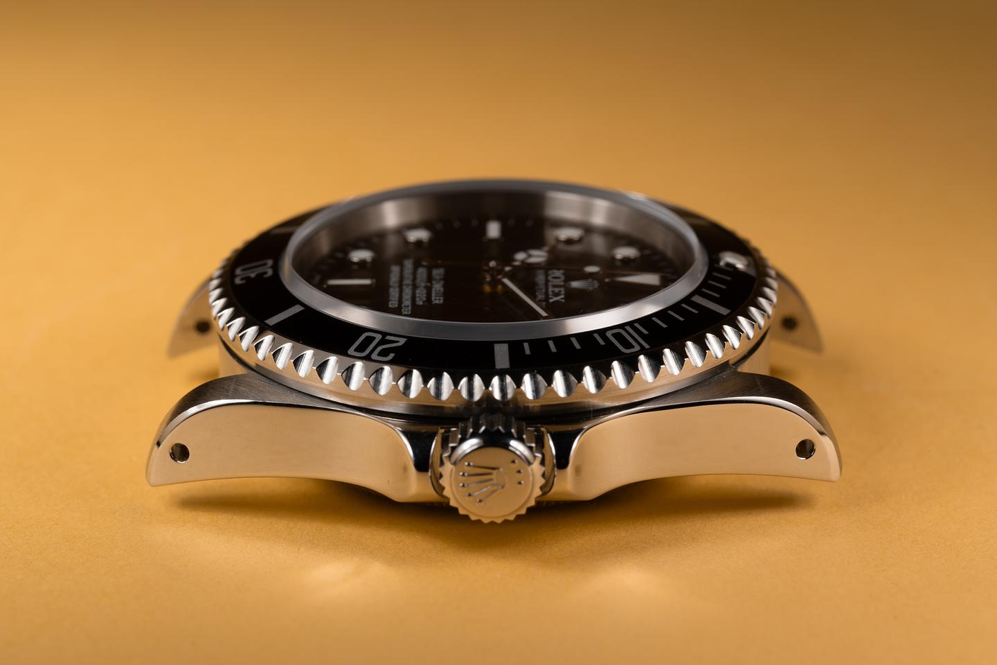 Case: The previously polished case is excellent showing sharp prominent bevels and only light wear from use. The black bezel insert is also in excellent condition showing only light wear from use.