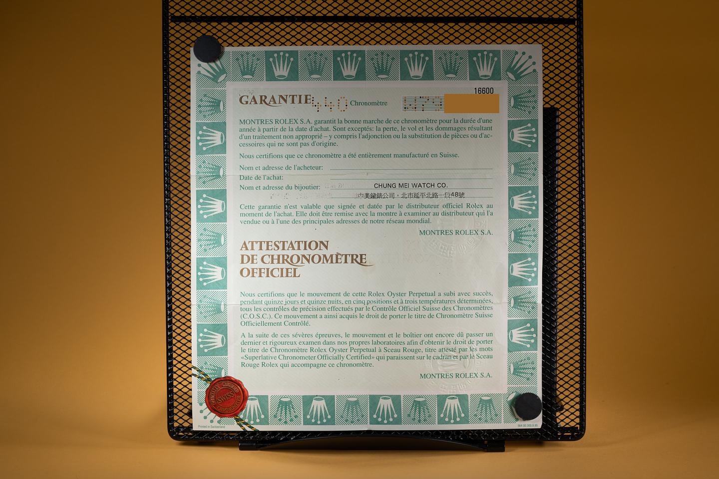 Bracelet: The 11 link Oyster bracelet is excellent showing only very light stretch for its age. The clasp is stamped with a matching 1995 date code.