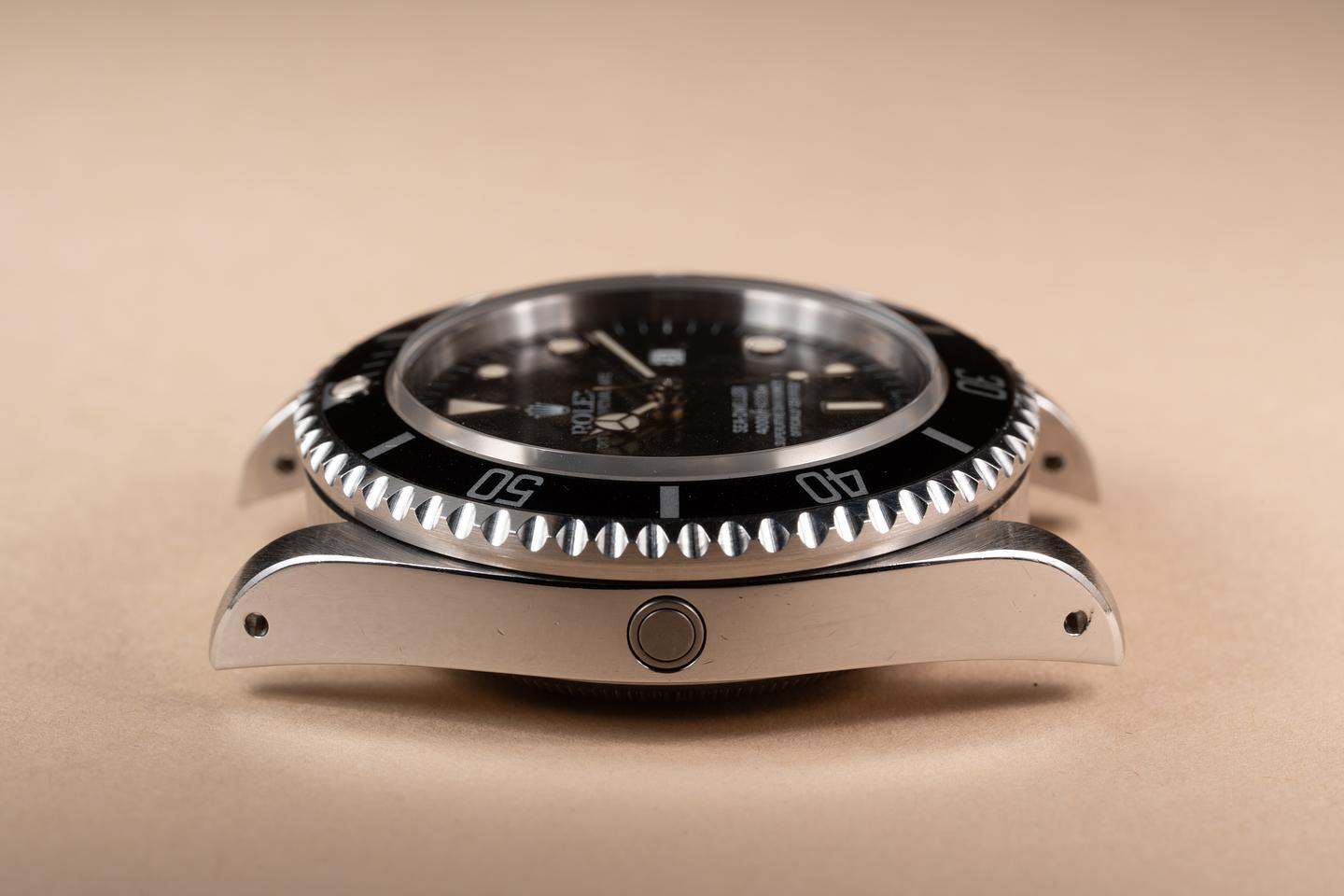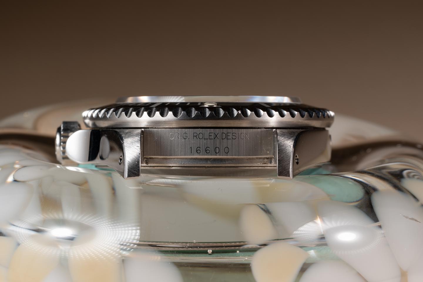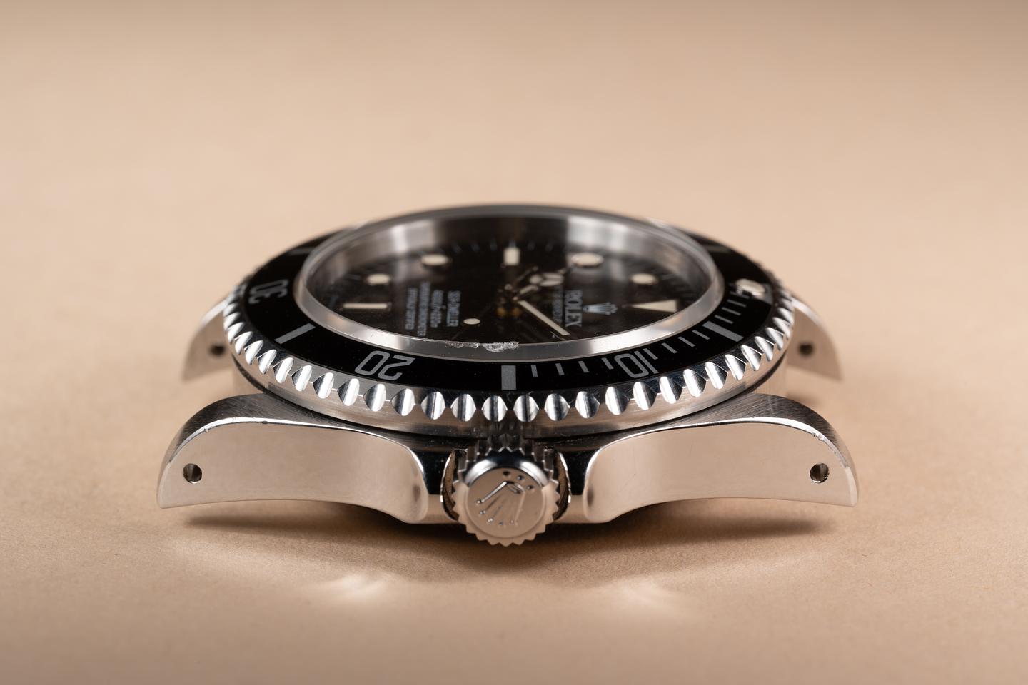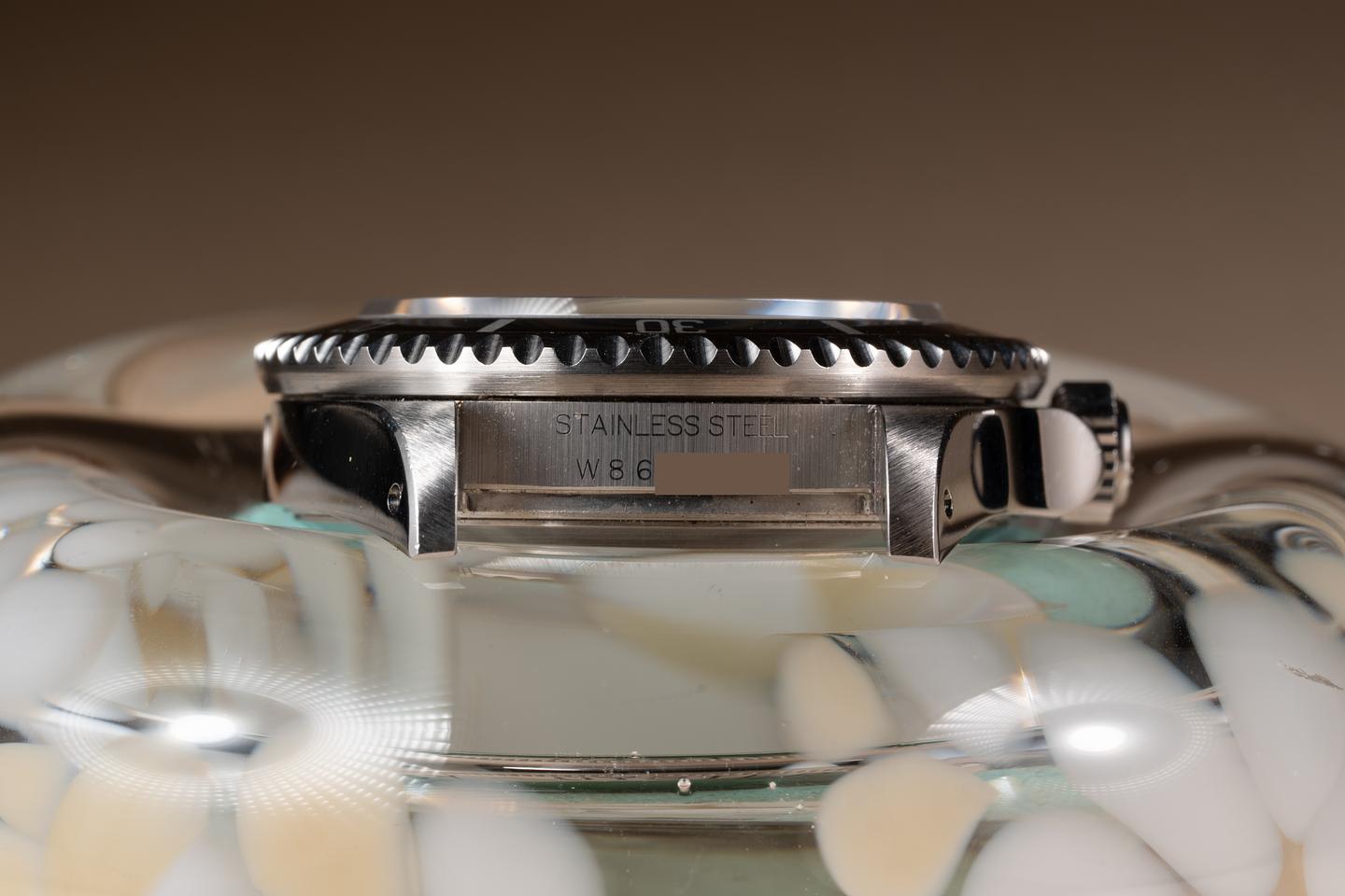 Case: The previously polished case is excellent showing prominent bevels and some light wear from use. The black bezel insert is also in excellent condition showing only light wear from use. There is a small chip on the outer edge of the crystal located at the 3 o'clock position