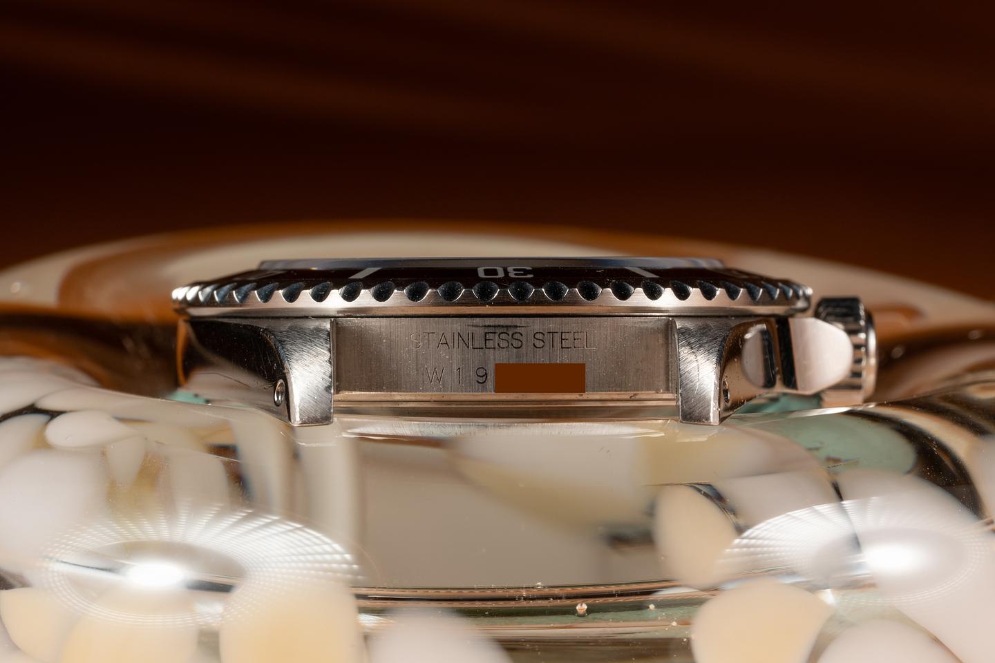 Case: The previously polished case is excellent showing light to average wear from use. The black bezel insert is also in excellent condition showing only light wear from use