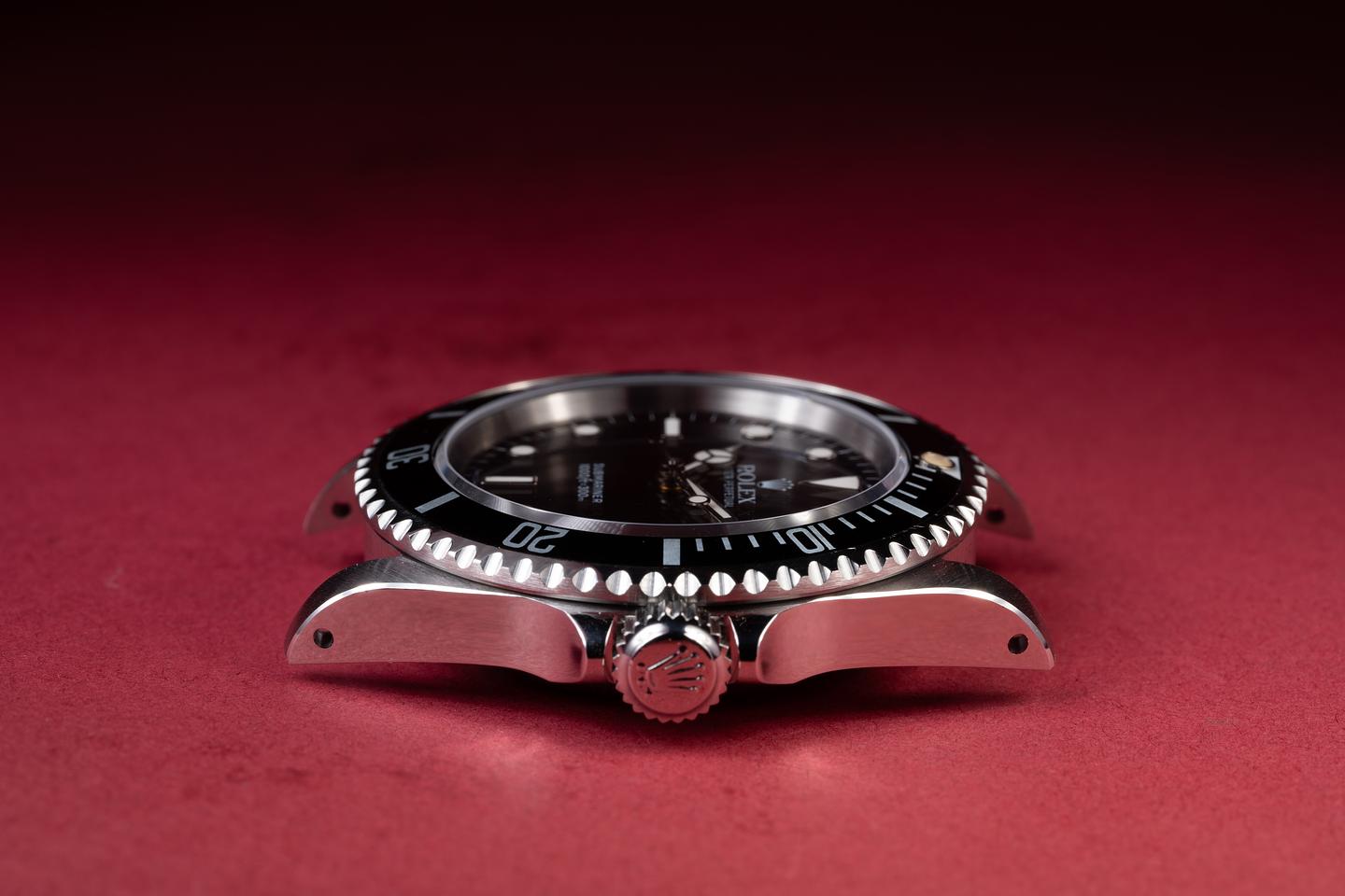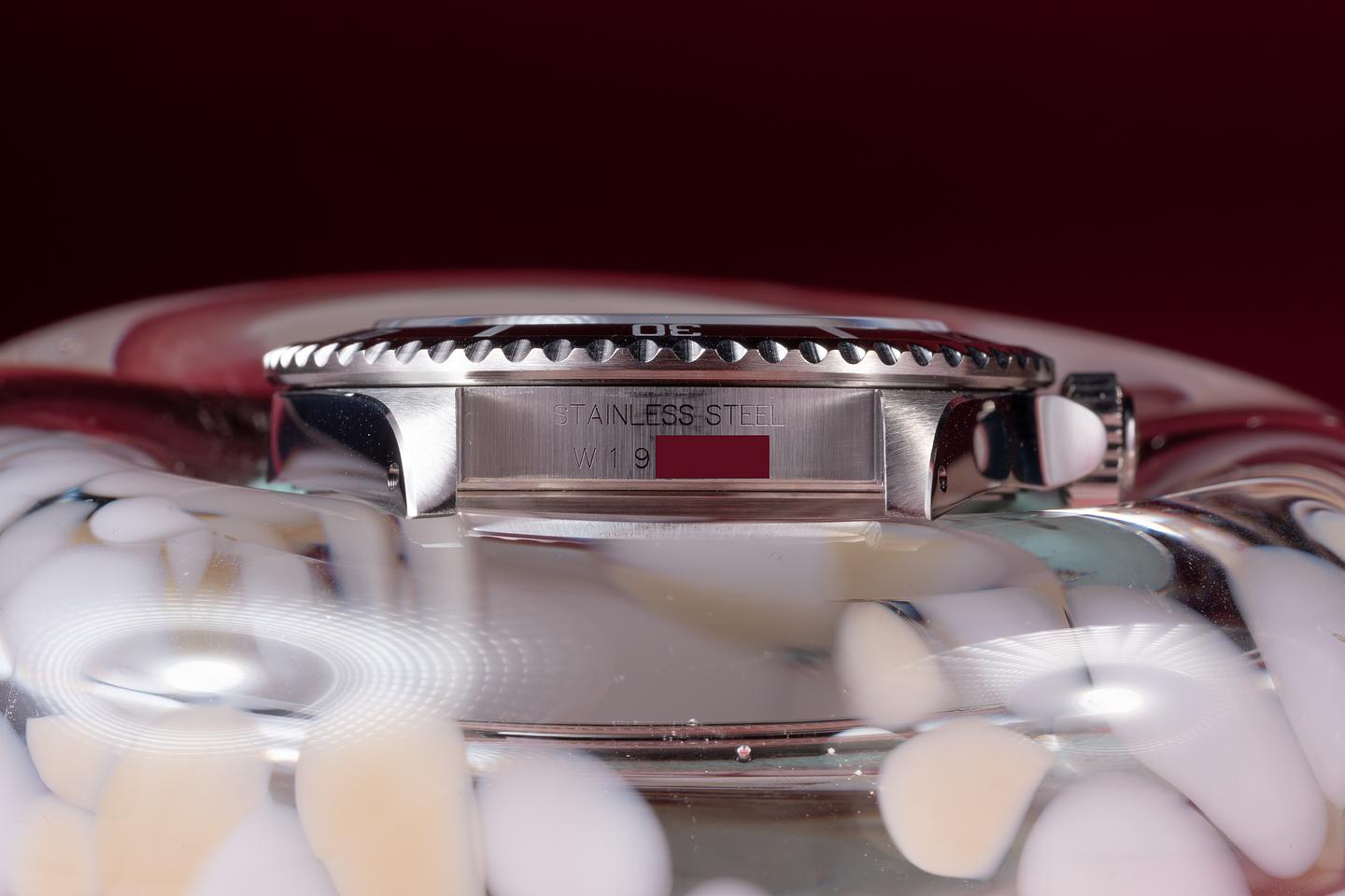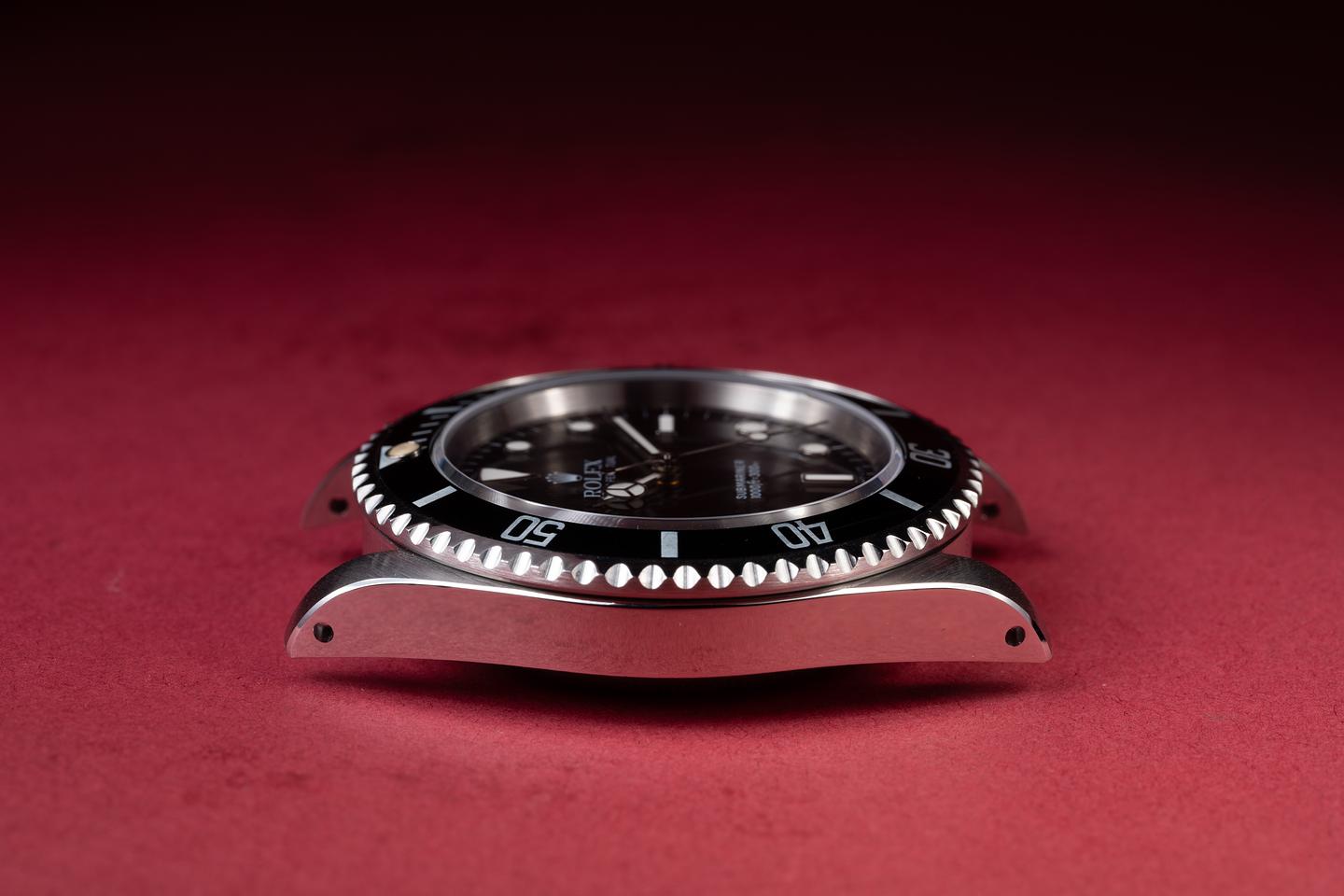 Case: The recently polished case is excellent showing sharp prominent bevels and only very light wear from use. The black bezel insert is also in excellent condition showing only very light wear from use.