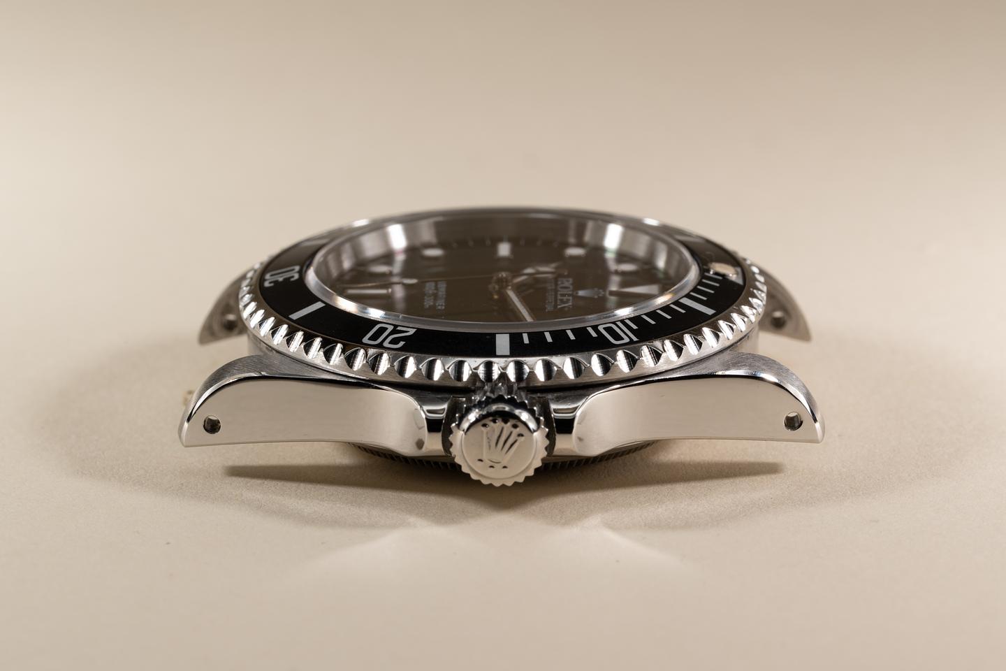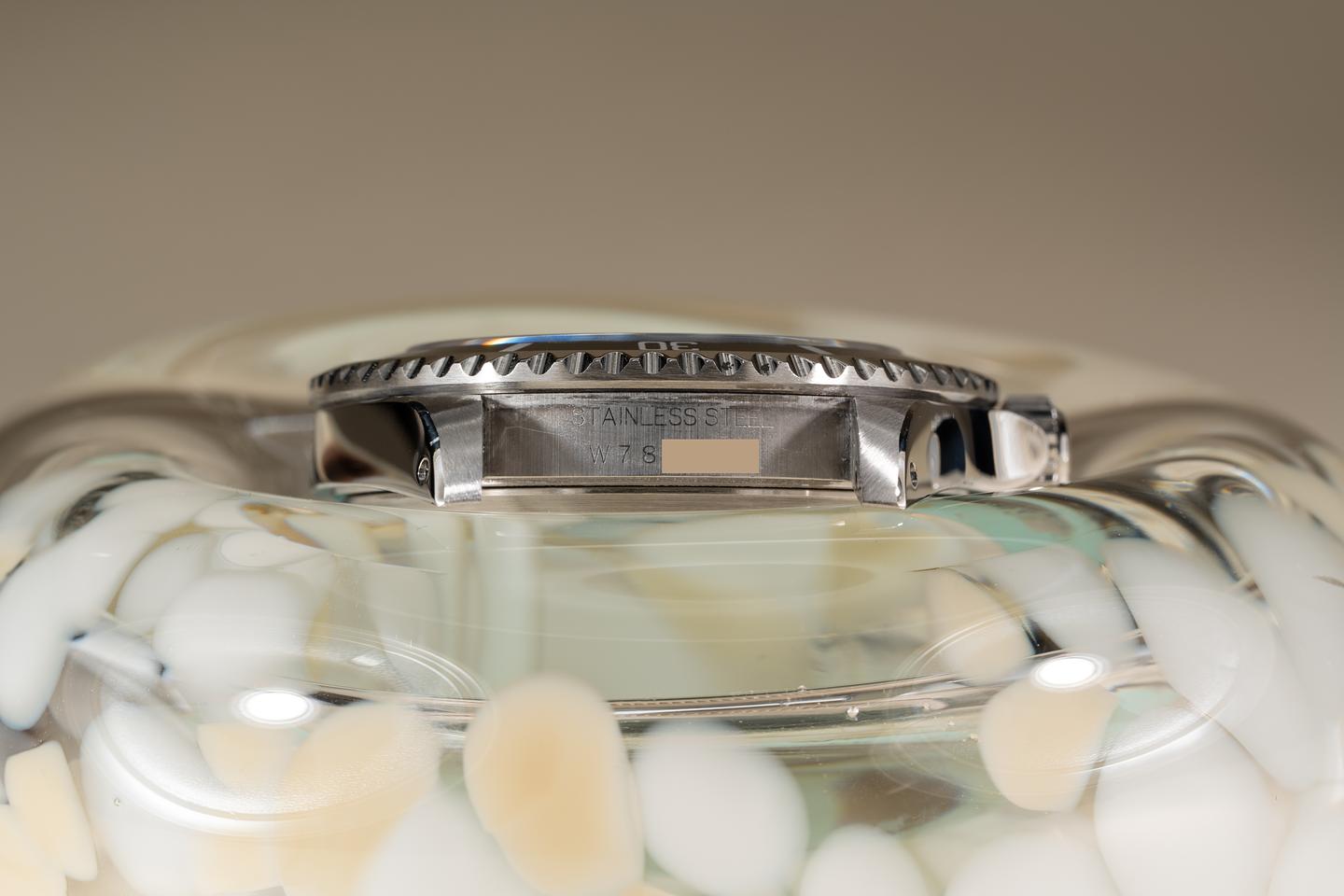 Case: The recently polished case is excellent showing sharp prominent bevels and only light wear from use. The black bezel insert is also in excellent condition showing only light wear from use.