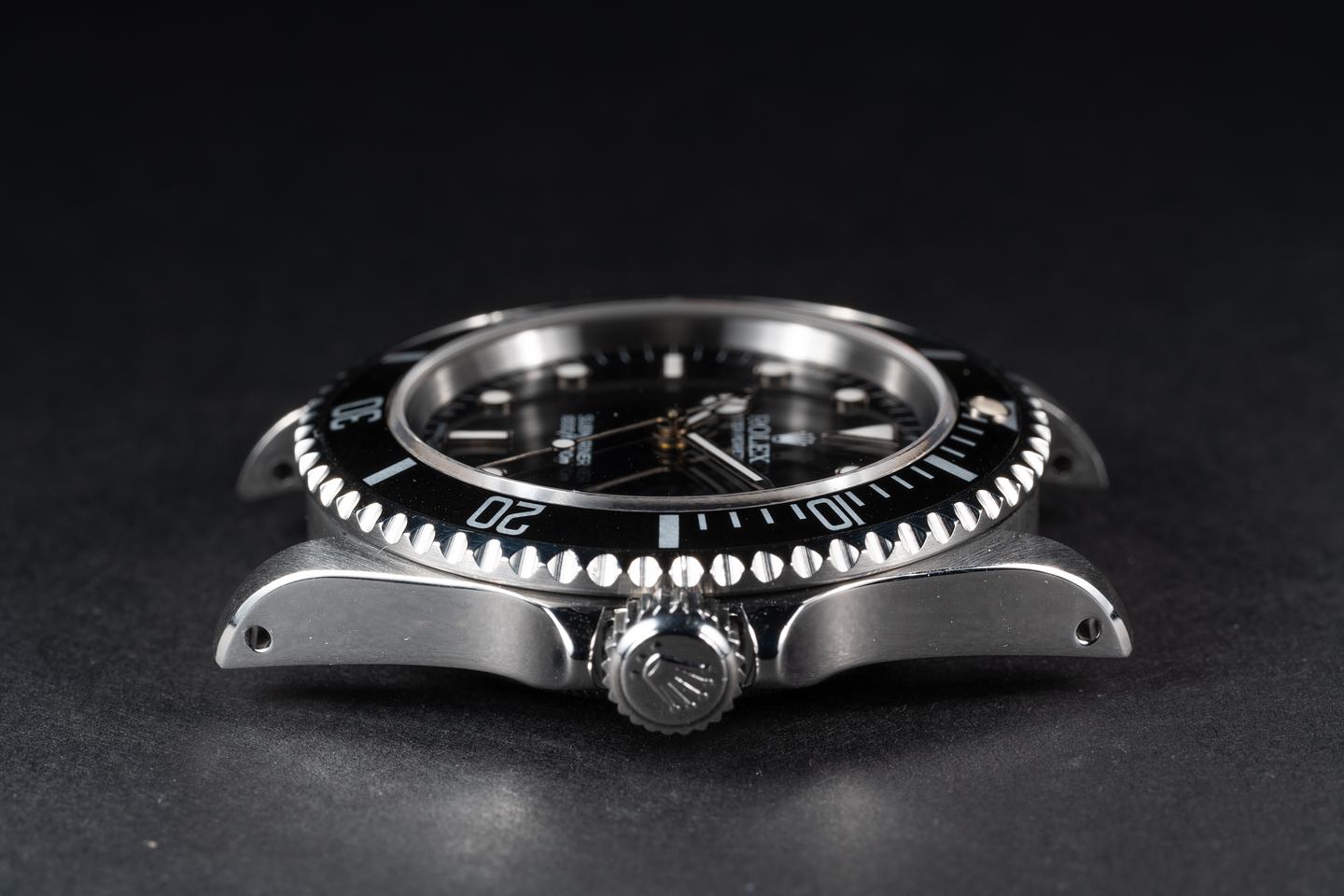 Case: The recently polished case is excellent showing sharp prominent bevels and only very light wear from use. The black bezel insert is also in excellent condition showing only light wear from use.