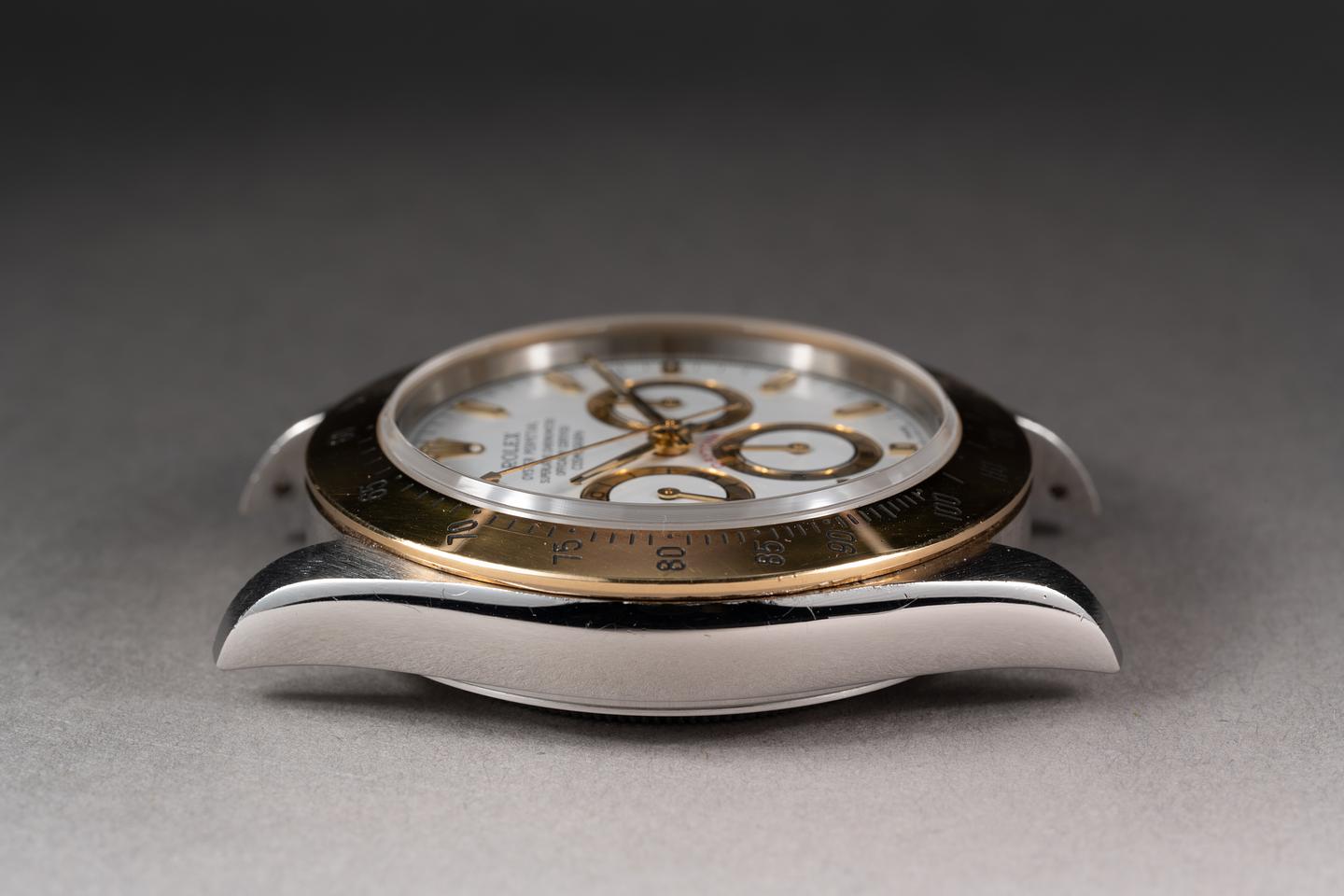 Case: The thick and even case is excellent showing some light wear from use. The 18k yellow gold bezel is also in excellent condition showing only light wear from use.