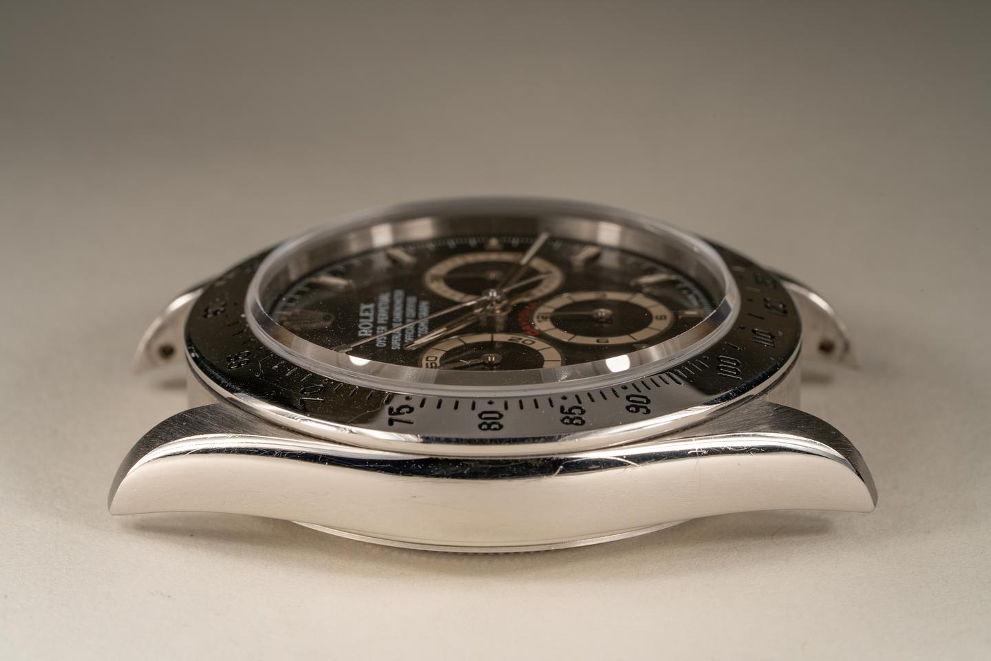 Case: The previously polished case is excellent showing only light wear from use. The stainless bezel is also excellent showing only light wear from use.