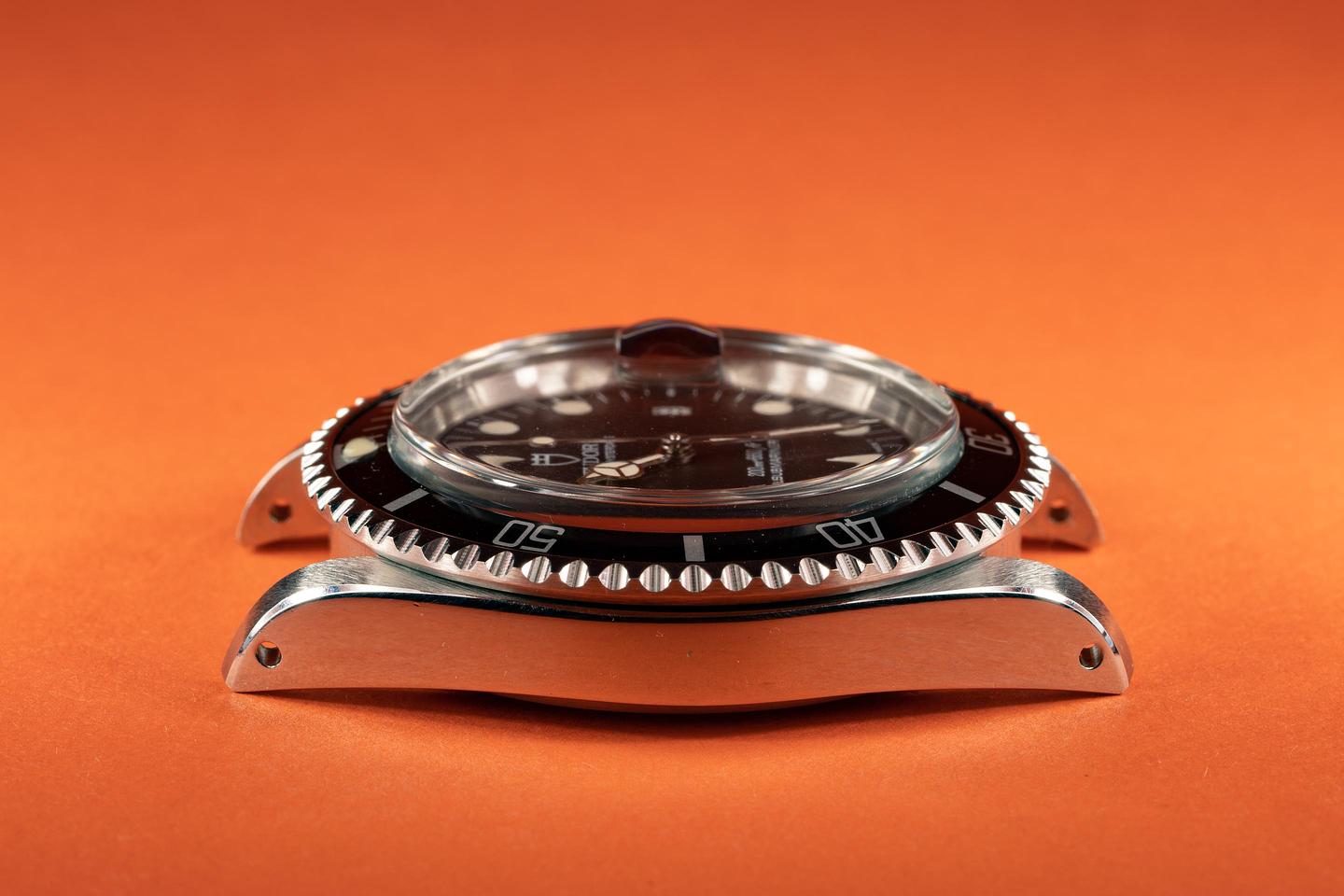 Case: The previously polished case features sharp prominent bevels and shows only very light wear from use. The black bezel insert is also in excellent condition and shows very light wear.