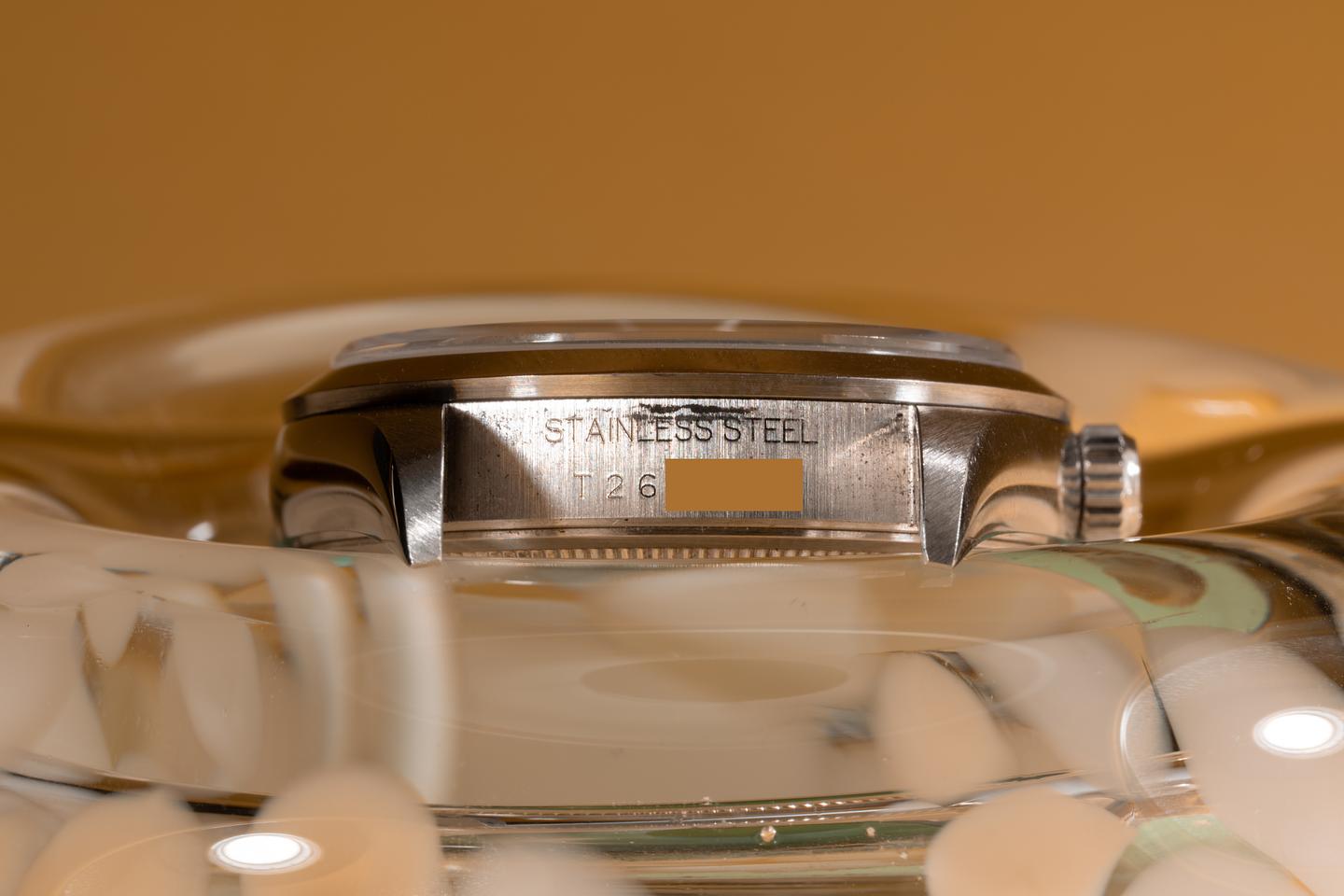 Bracelet: The 12 link oyster bracelet is excellent showing only very light stretch for its age. The clasp is stamped with a matching 1996 date code.