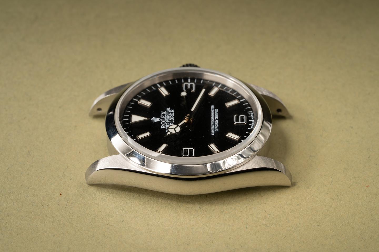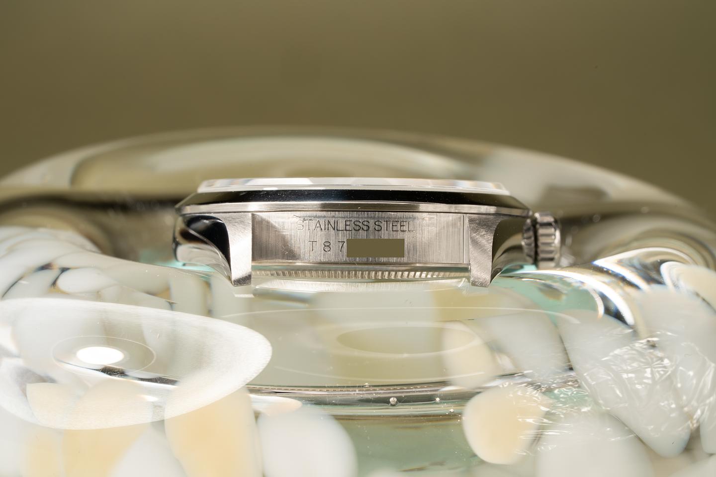 Case: The sharp and even case has just returned from polishing. The smooth stainless bezel has also just been polished and is in immaculate condition.