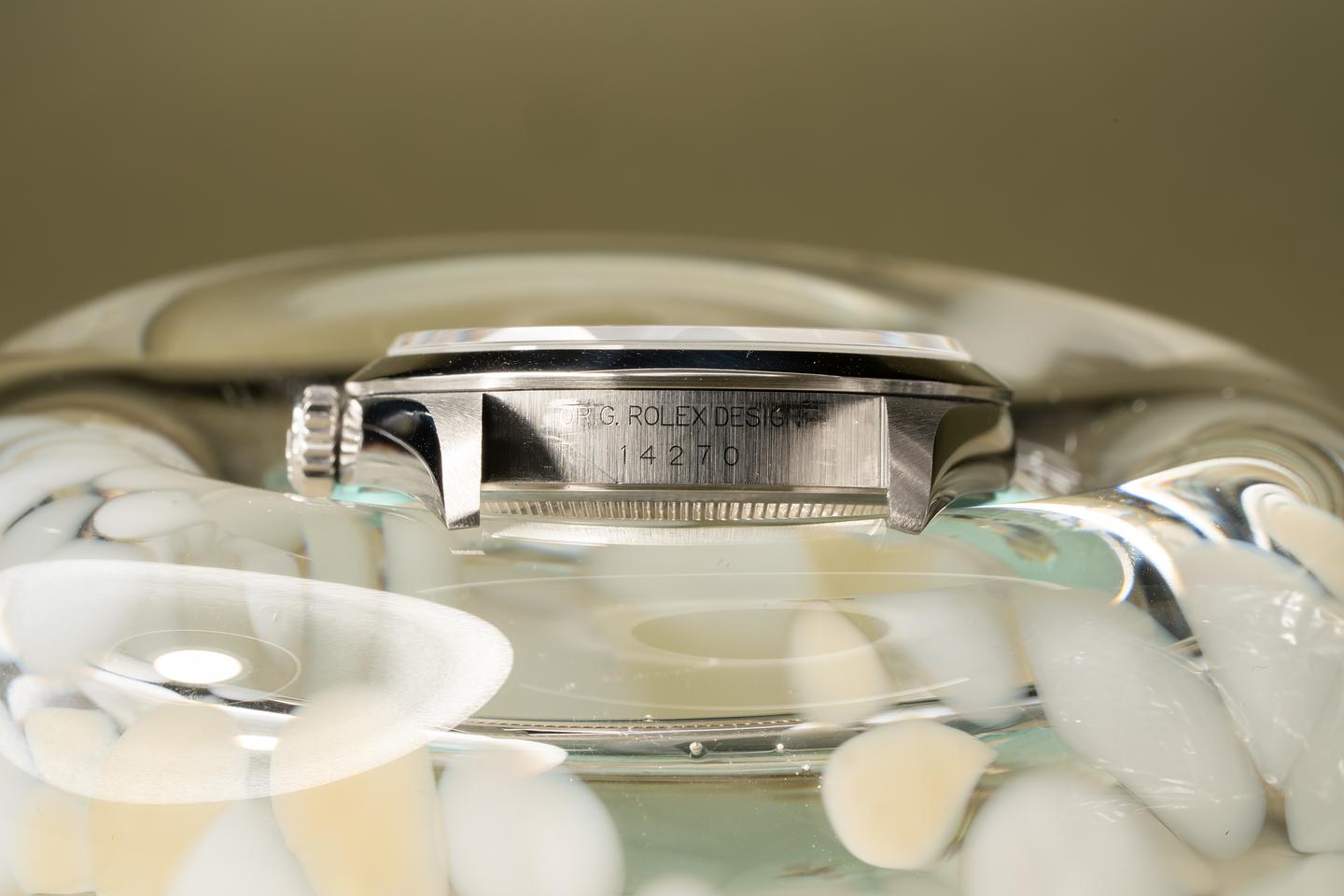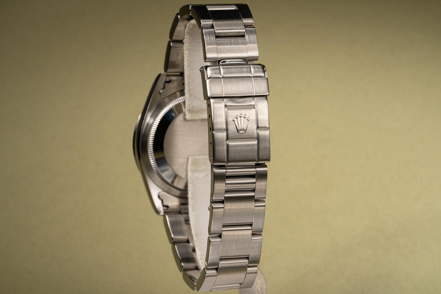 Bracelet: Excellent 12 link oyster bracelet with very light stretch. The clasp is stamped with a 1997 date code.