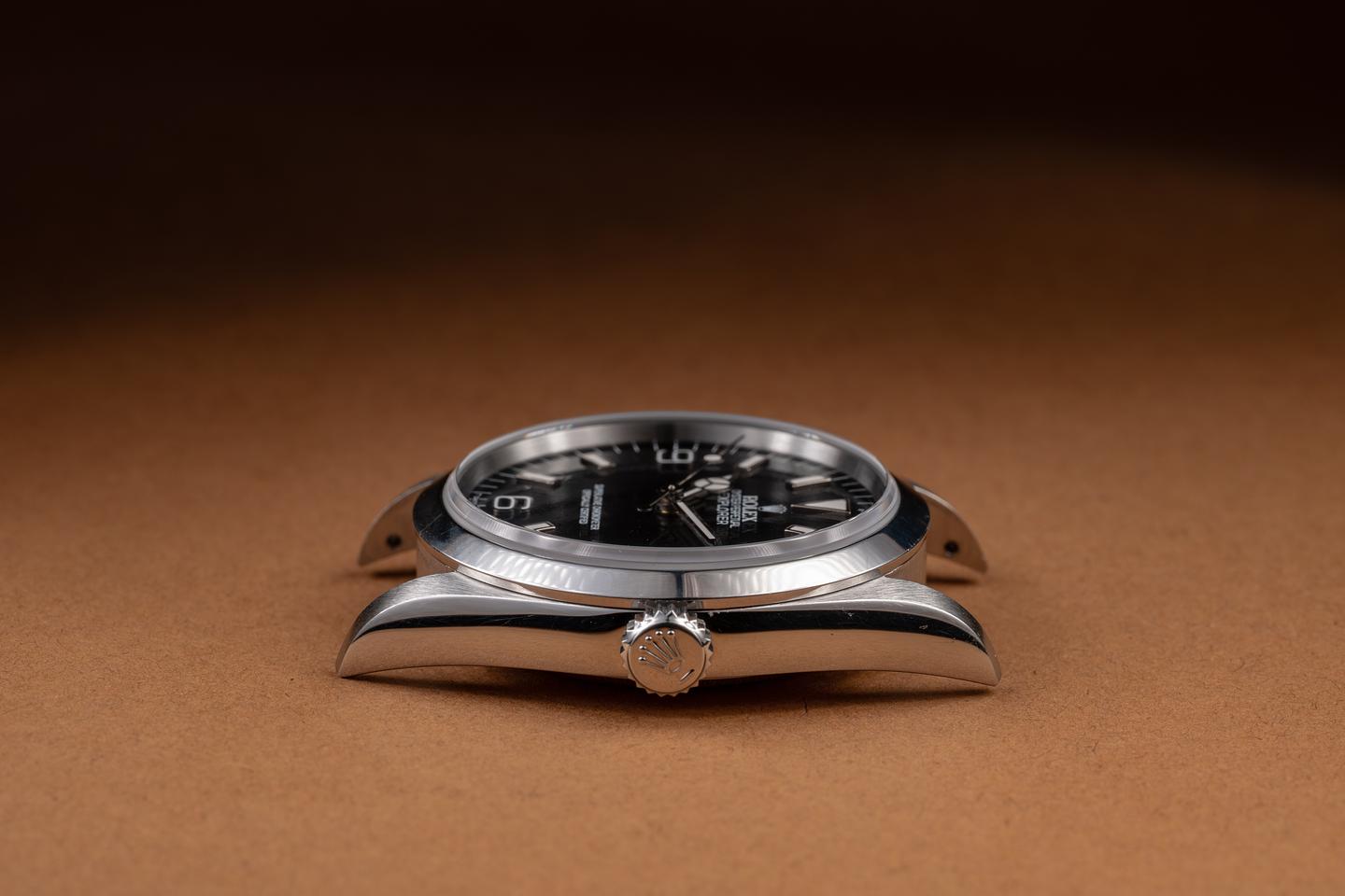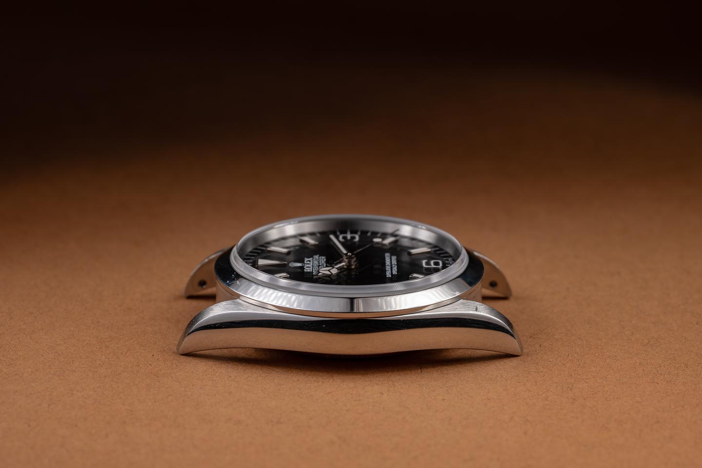 Case: The sharp 36mm case is excellent, showing only light wear from use. The smooth stainless bezel is also in excellent condition, showing only light wear from use.