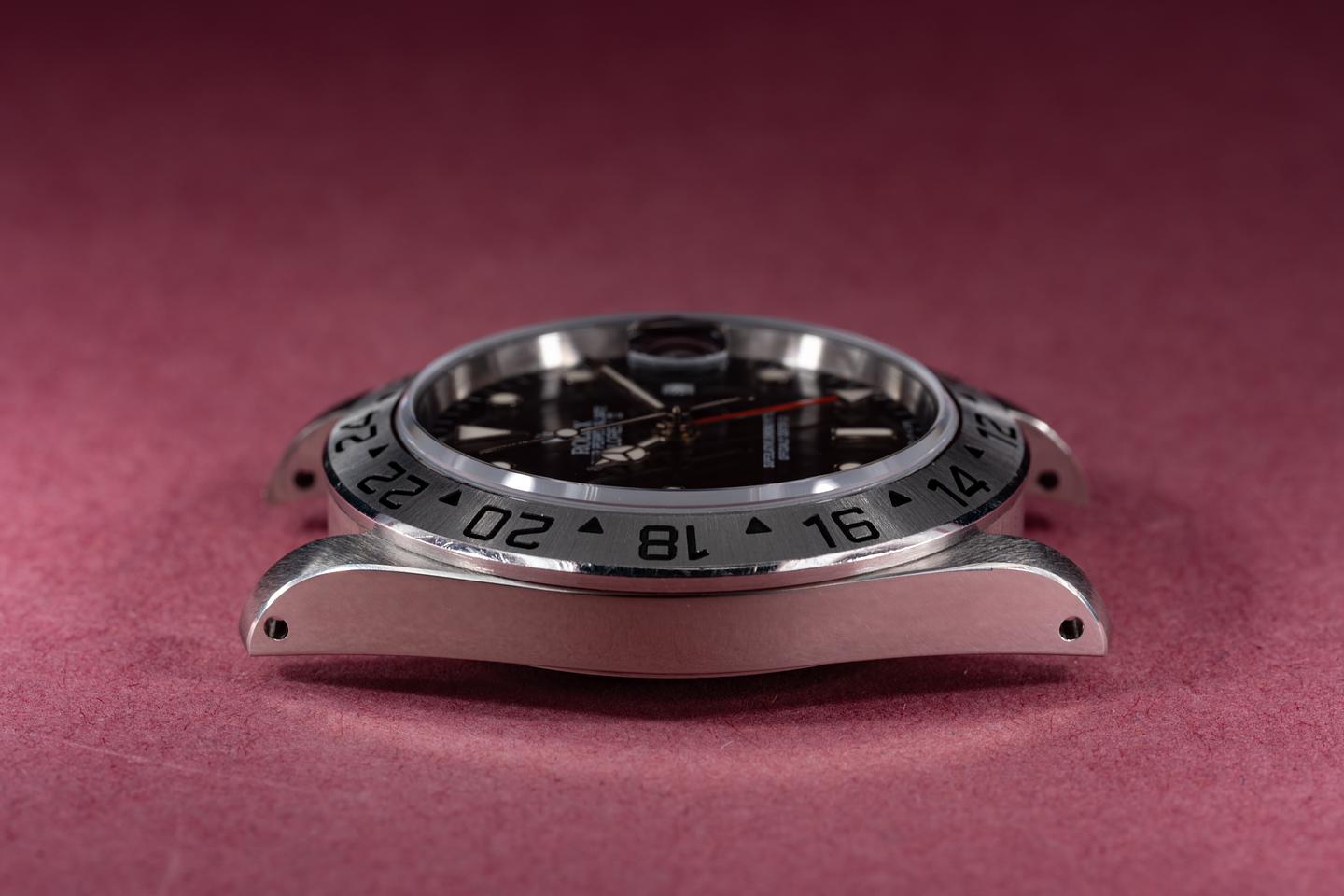 Case: The thick and even case has recently been polished showing sharp prominent bevels and only very light wear from use. The stainless bezel is also in excellent condition showing only very light wear from use.