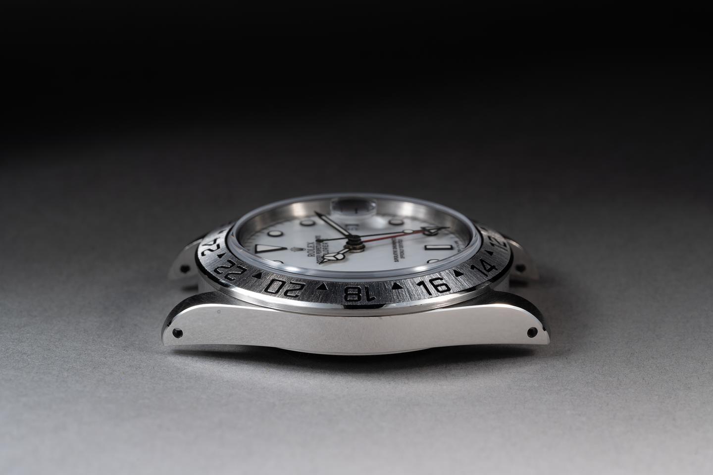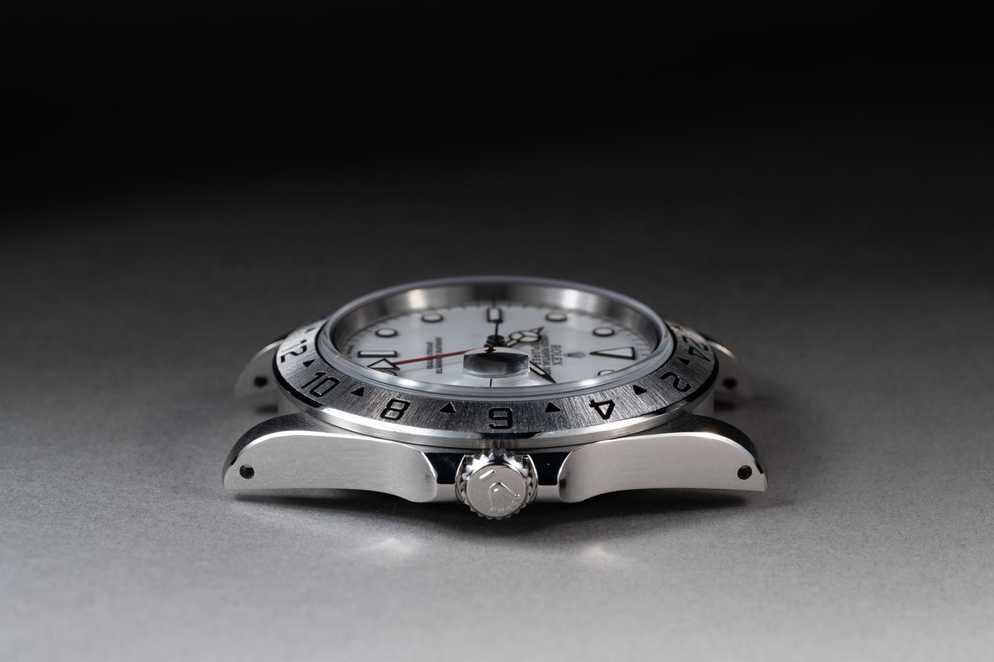 Case: The case has just returned from polishing showing sharp prominent bevels. The freshly polished stainless bezel is also in excellent condition showing a sharp well defined sunburst finish.
