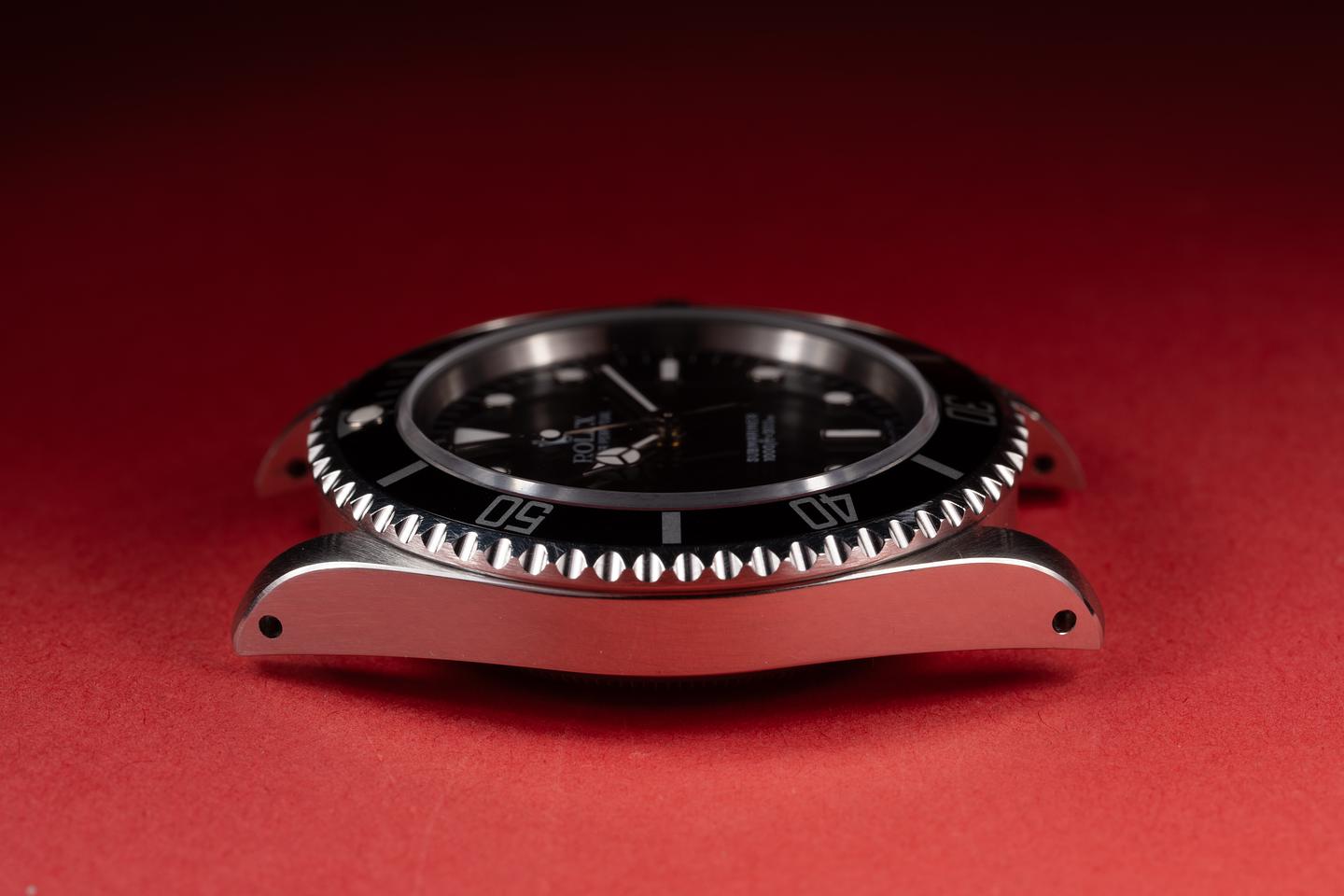 Case: The recently polished case is excellent showing sharp prominent bevels and only very light wear from use. The black bezel insert is excellent showing only very light wear from use.
