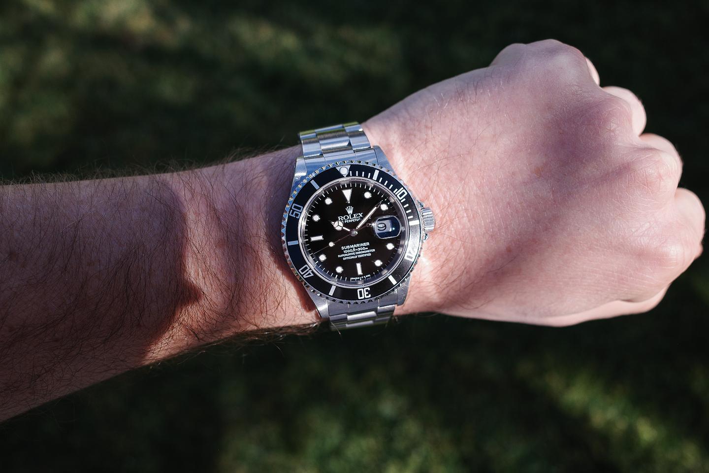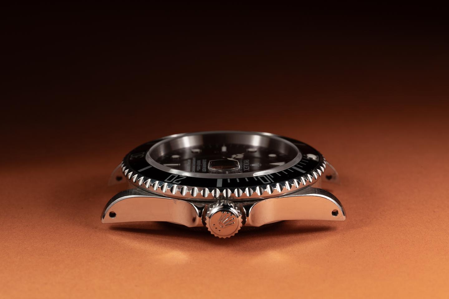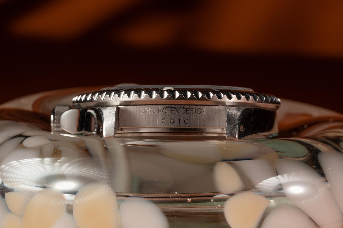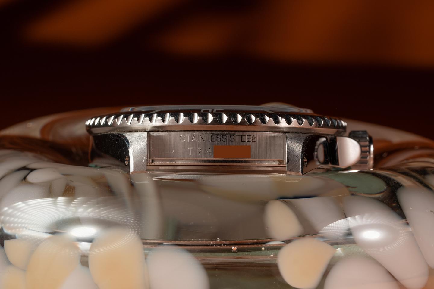 Case: The thick and even case is excellent showing sharp prominent bevels and only light wear from use. The black bezel insert is also in excellent condition showing only light wear from use.