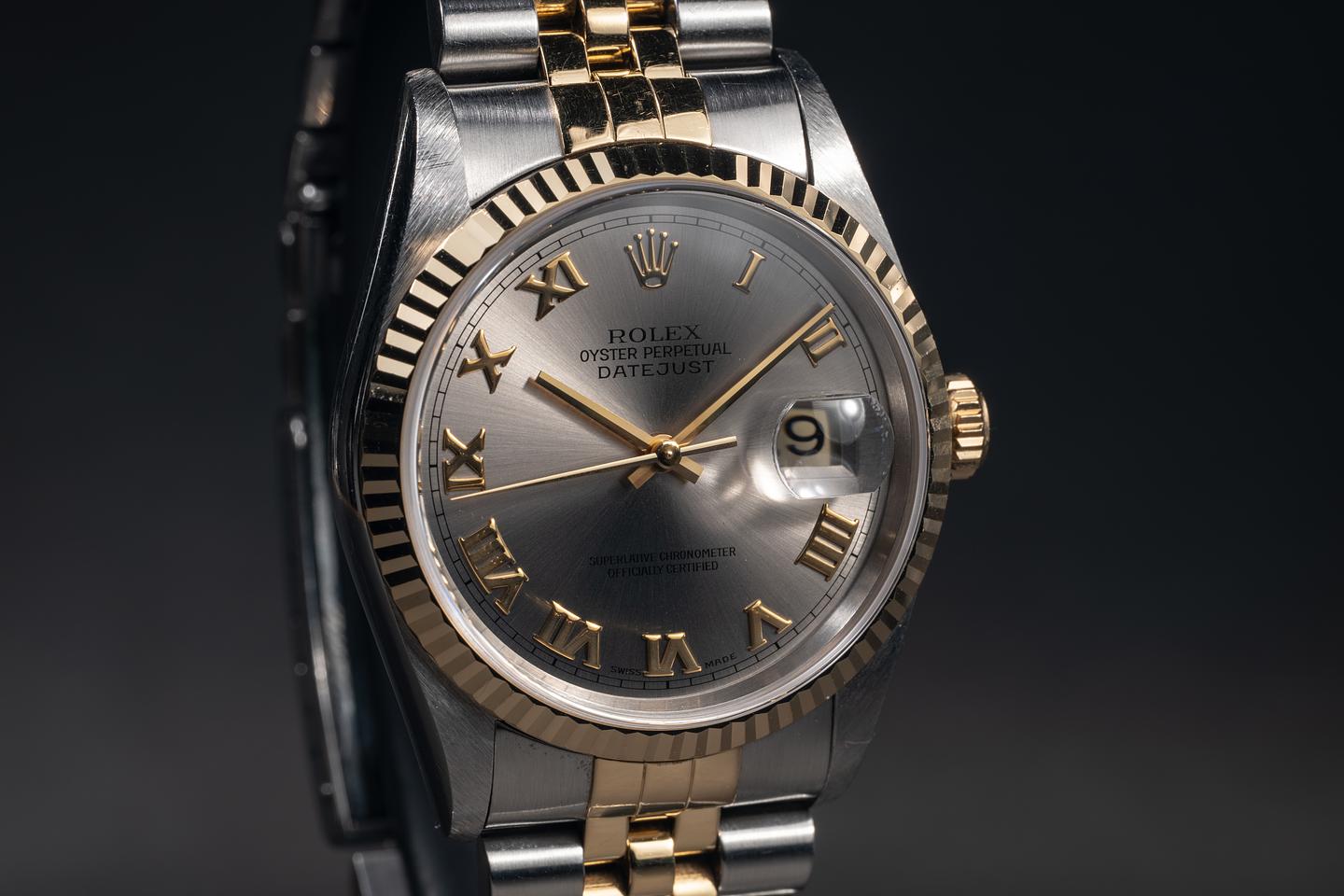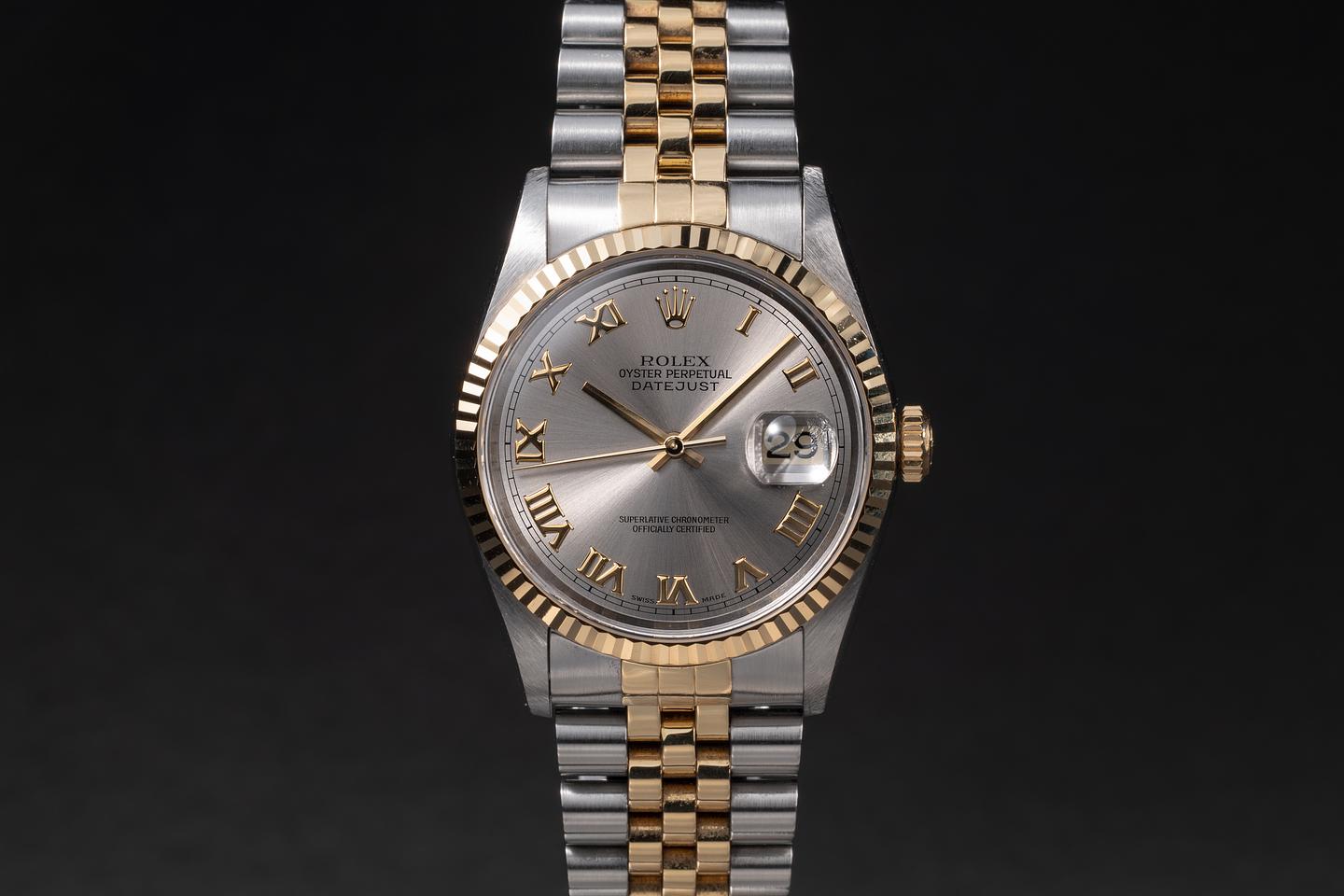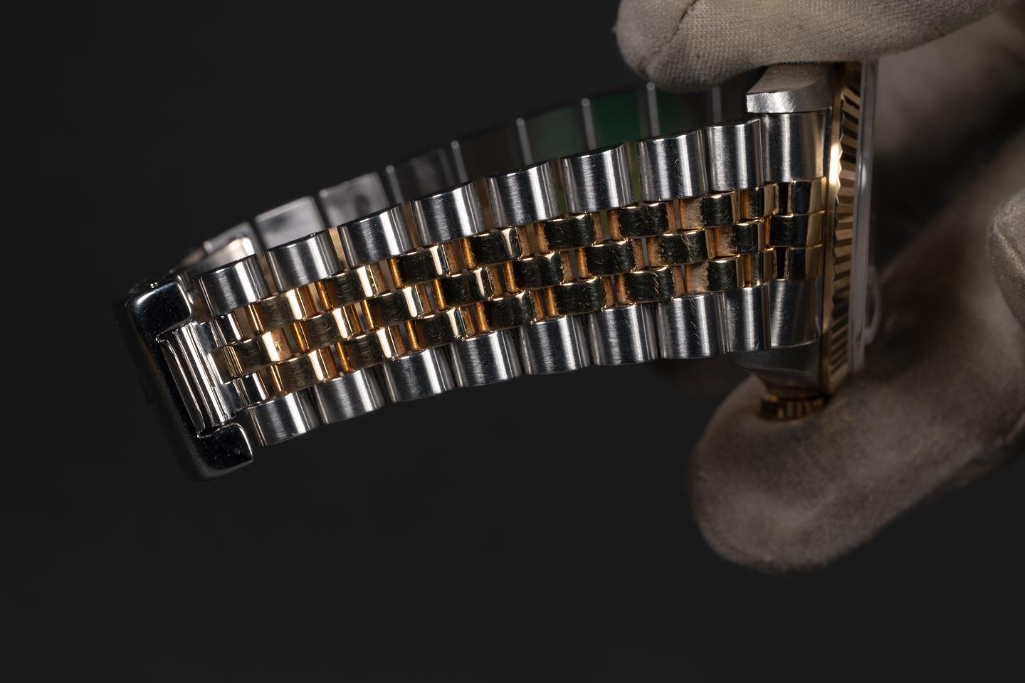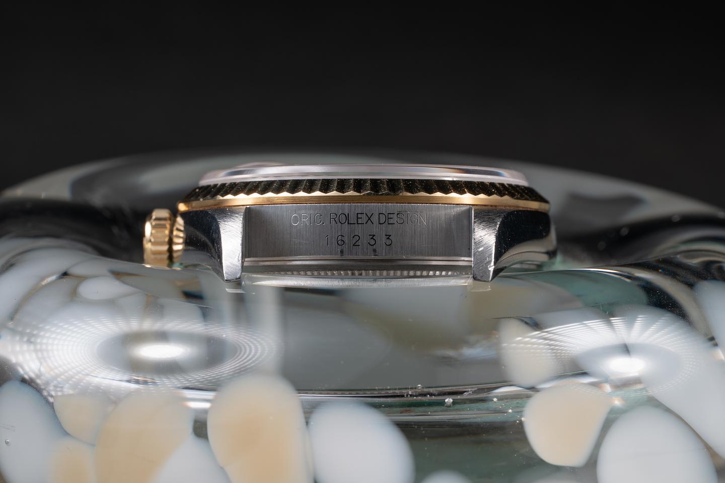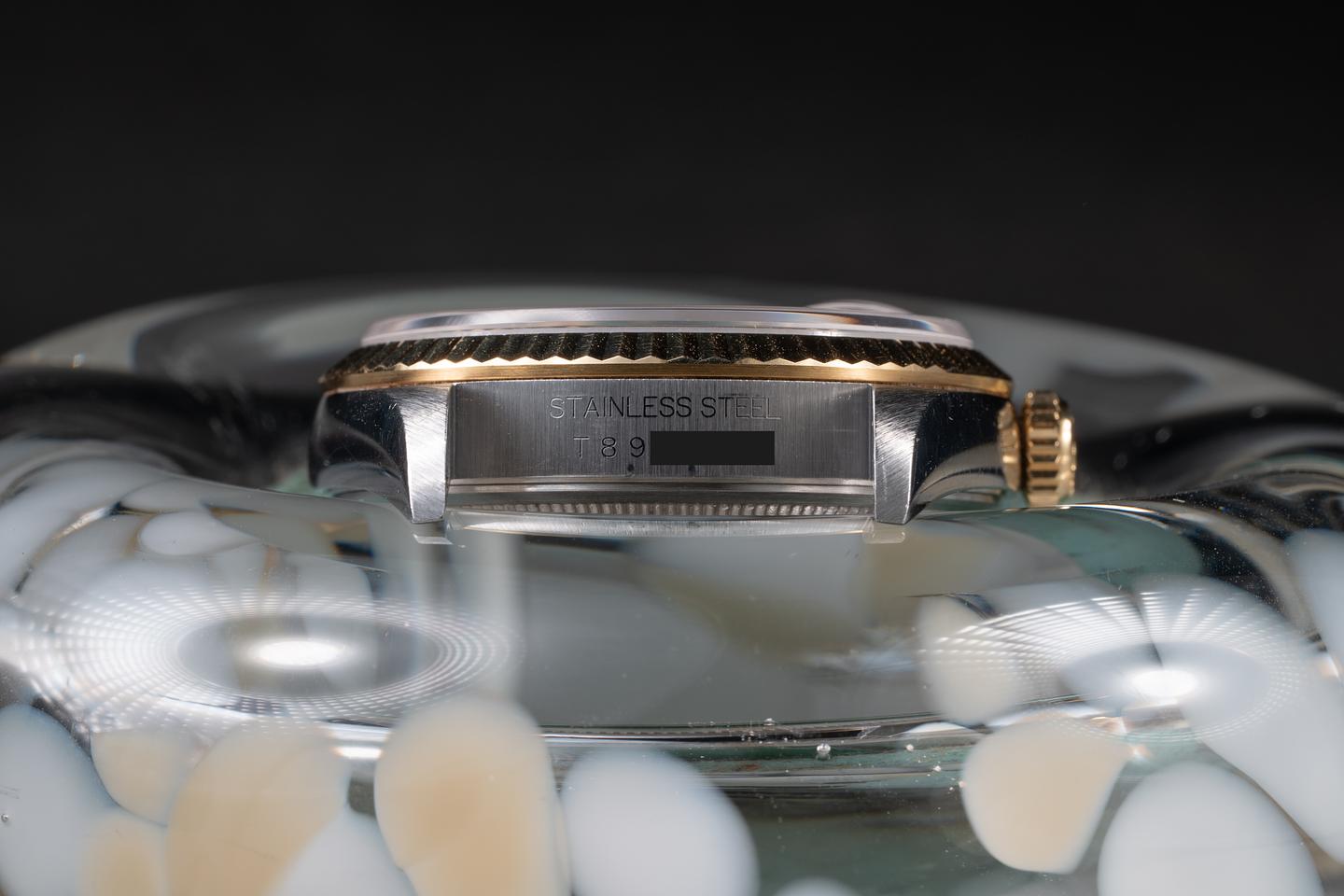 Bracelet: The 19-link two-tone Jubilee bracelet is excellent, showing a warm, rosy patina and only very light stretch for its age. The clasp is stamped with a matching 1996 date code.