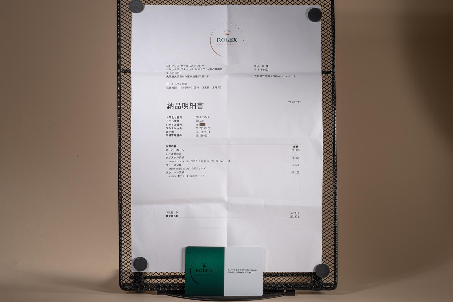 Accessories: Rolex Service Guarantee Valid until 08.2027