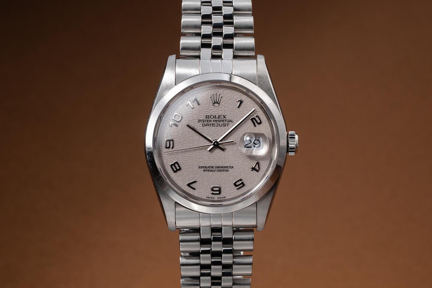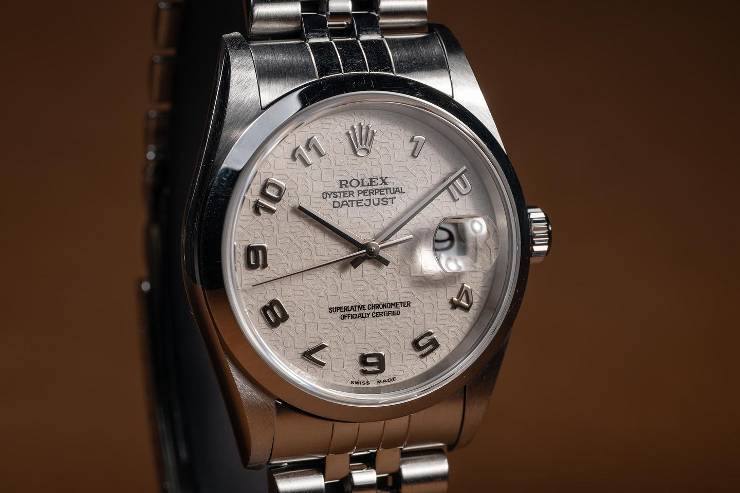 Dial: The silver white Jubilee "Computer" no lume dial is excellent, showing no visible wear. The original factory no lume hands are matching.