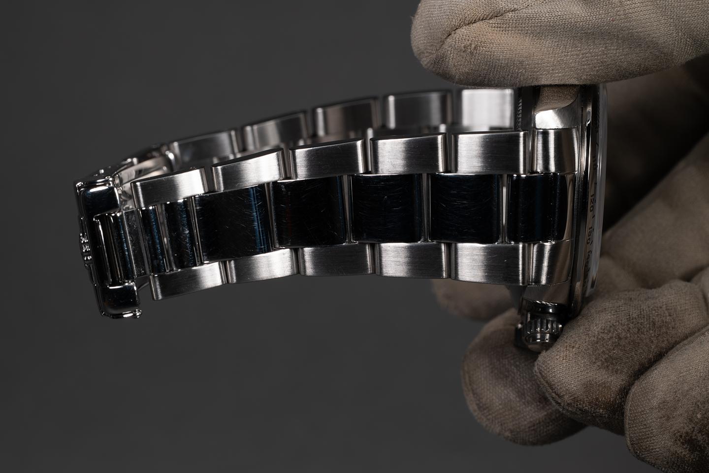 Case: The previously polished case is excellent, showing only light wear from use. The stainless bezel is also in excellent condition, showing only very light wear from use.
