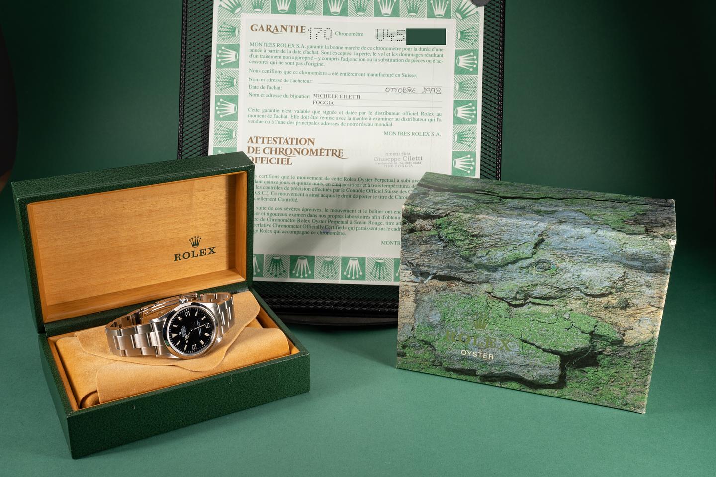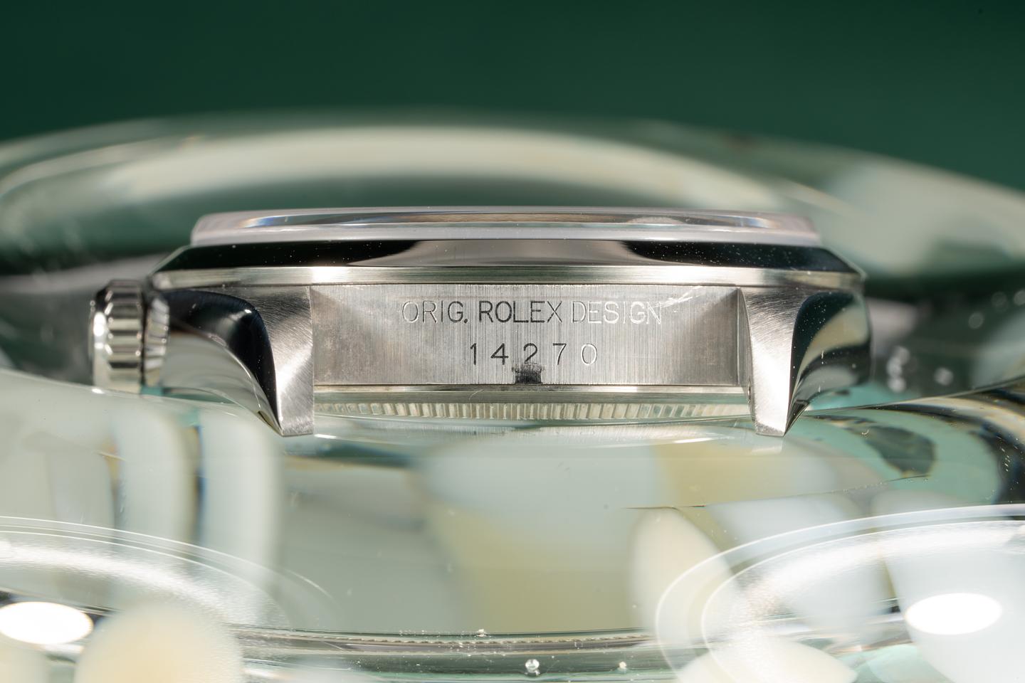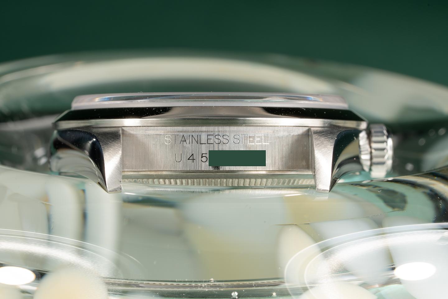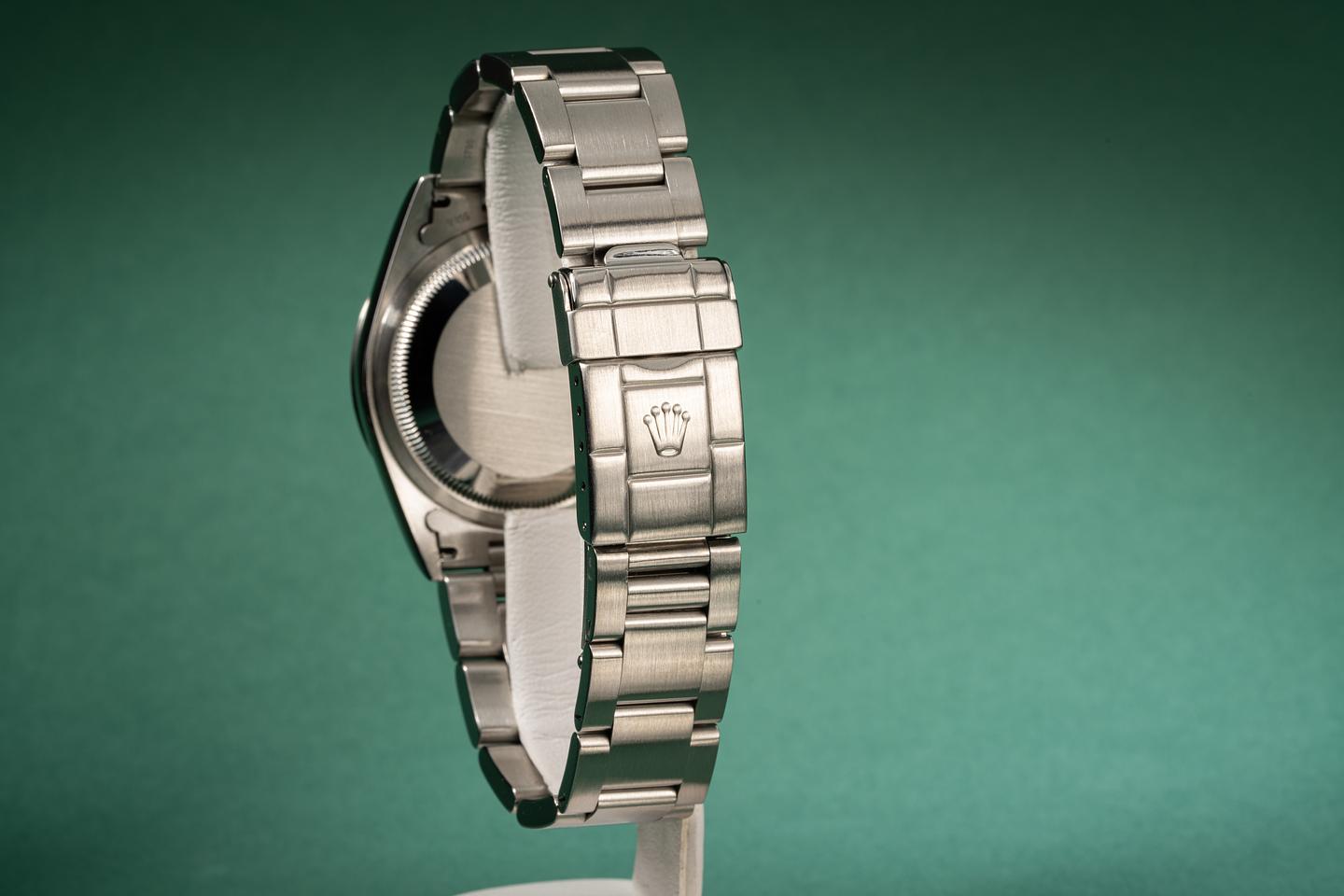 Bracelet: Excellent 12 link oyster bracelet with light stretch. The clasp is stamped with a 1998 date code.