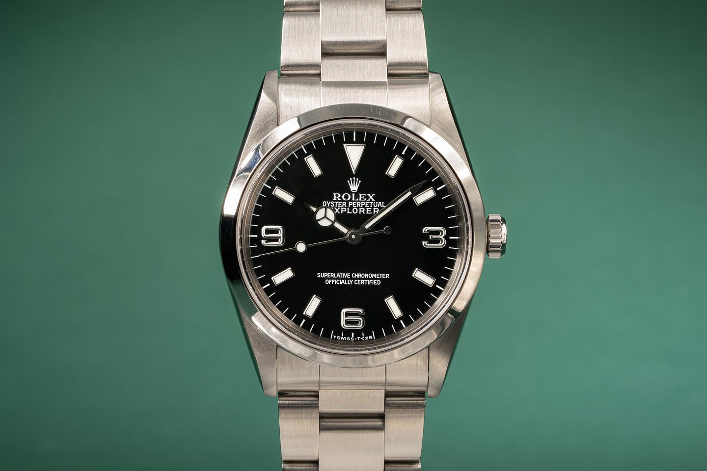 Notes: This dial is from the era Rolex was transitioning from tritium to luminova. It's widely thought that instead of Rolex throwing out the already produced dials marked "T Swiss- T<25" they instead just filled them with the new Luminova luminous material and sent them out to ADs.
