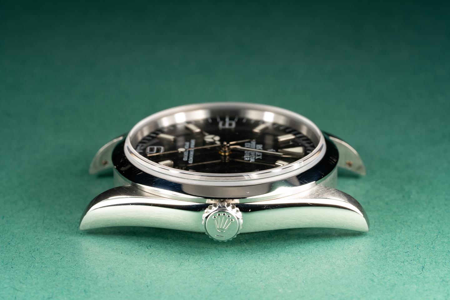 Case: The recently polished case and bezel are excellent and show only very light wear.
